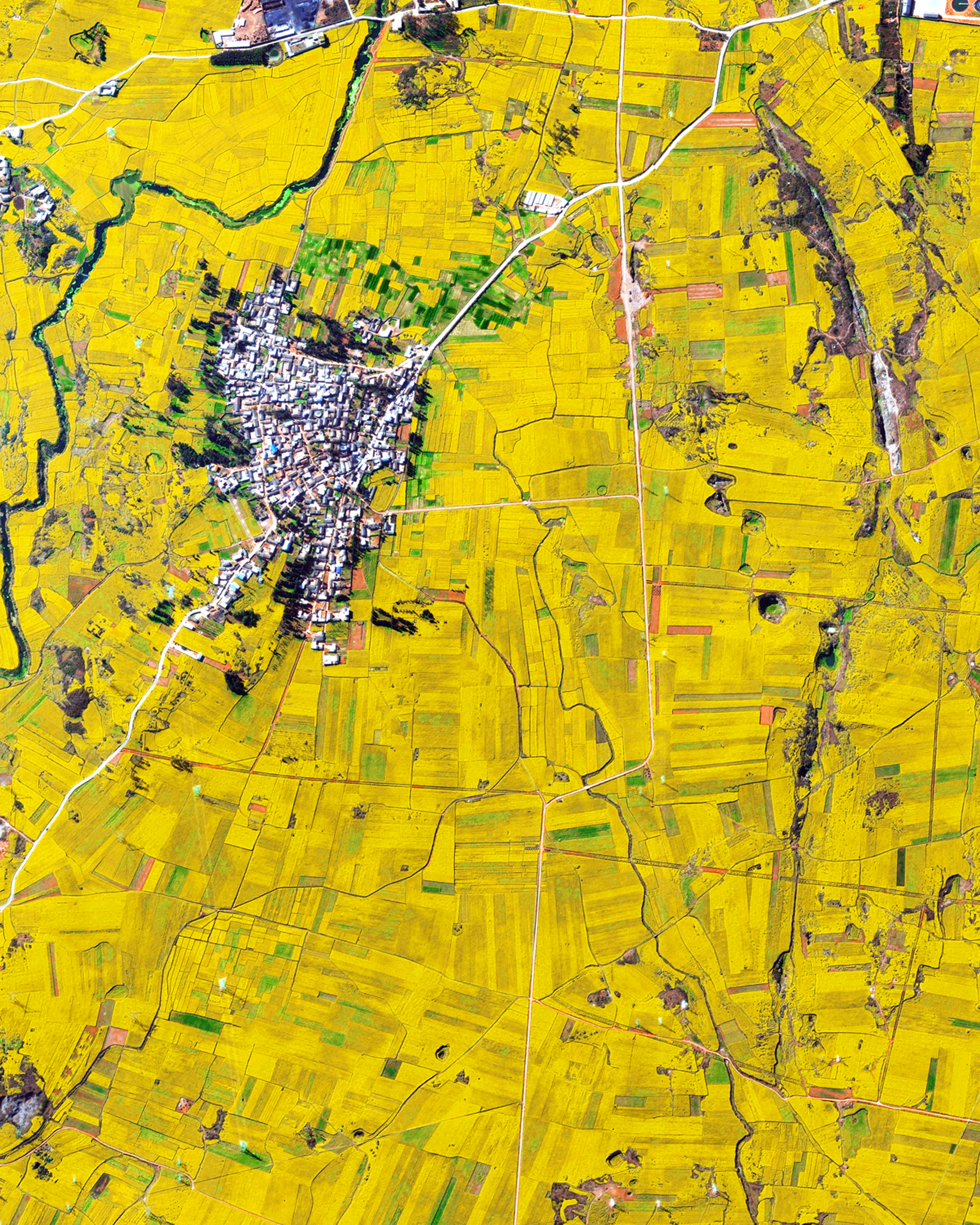 Canola flower fields cover the mountainous landscape of Luoping County, China. The crop is grown for the production of oil, which is extracted by slightly heating and then crushing the flower seeds. Canola oil is primarily used as a source of biodiesel and is also a key ingredient in many foods.