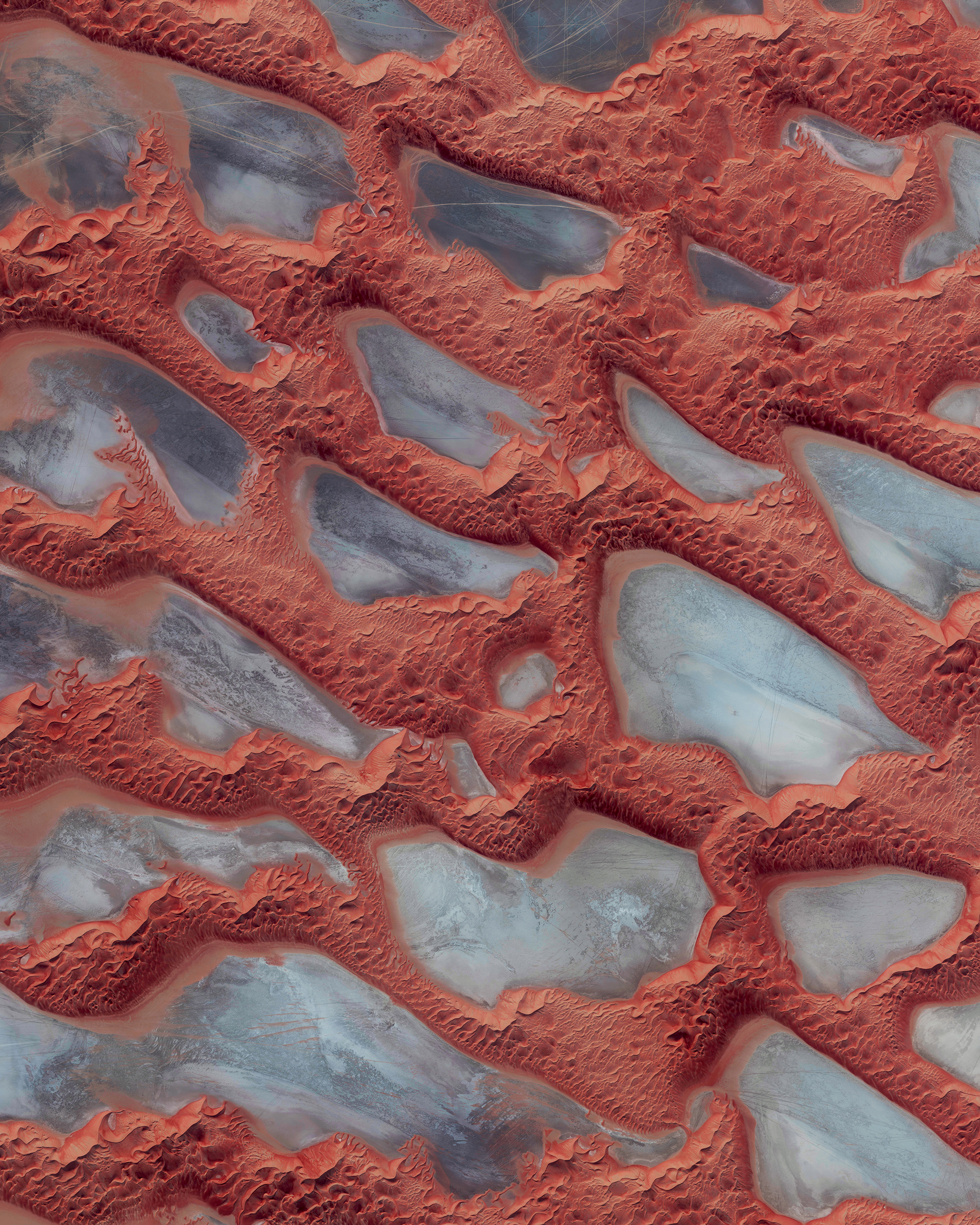 Rub’ al Khali — or “The Empty Quarter” — is the largest sand desert in the world. It covers 251,000 square miles (650,000 sq. km) and includes parts of Saudi Arabia, Oman, Yemen, and the United Arab Emirates. In the center of the desert there are a number of raised, hardened formations that were once the sites of shallow lakes, thousands of years ago.