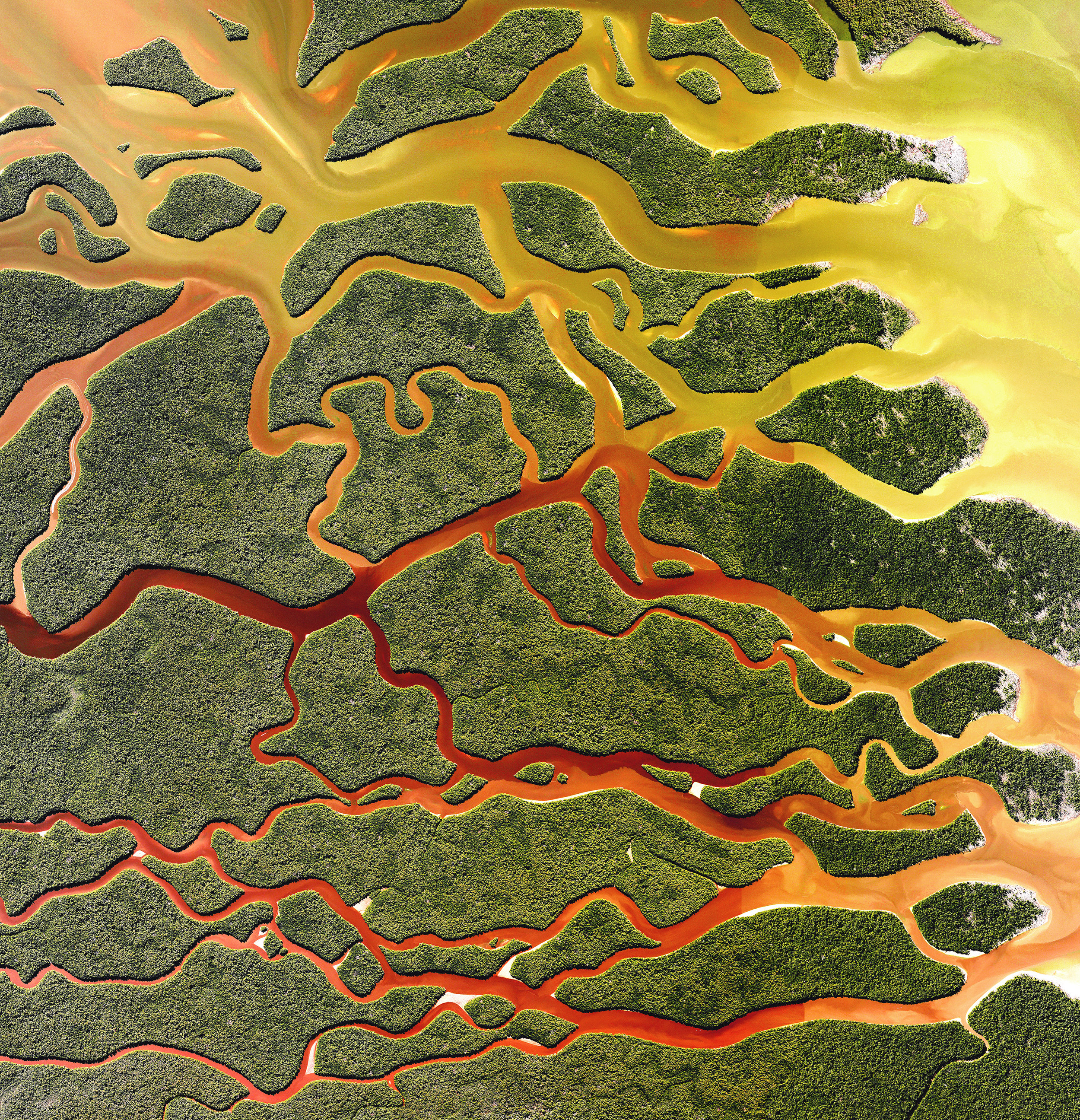 Residential development is seen in Boca Raton, Florida, USA. Because many cities in the state contain master-planned communities, often built on top of waterways in the latter half of the twentieth century, there are a number of intricate designs that are visible from the Overview perspective. Boca Raton is home to roughly 91,000 residents.