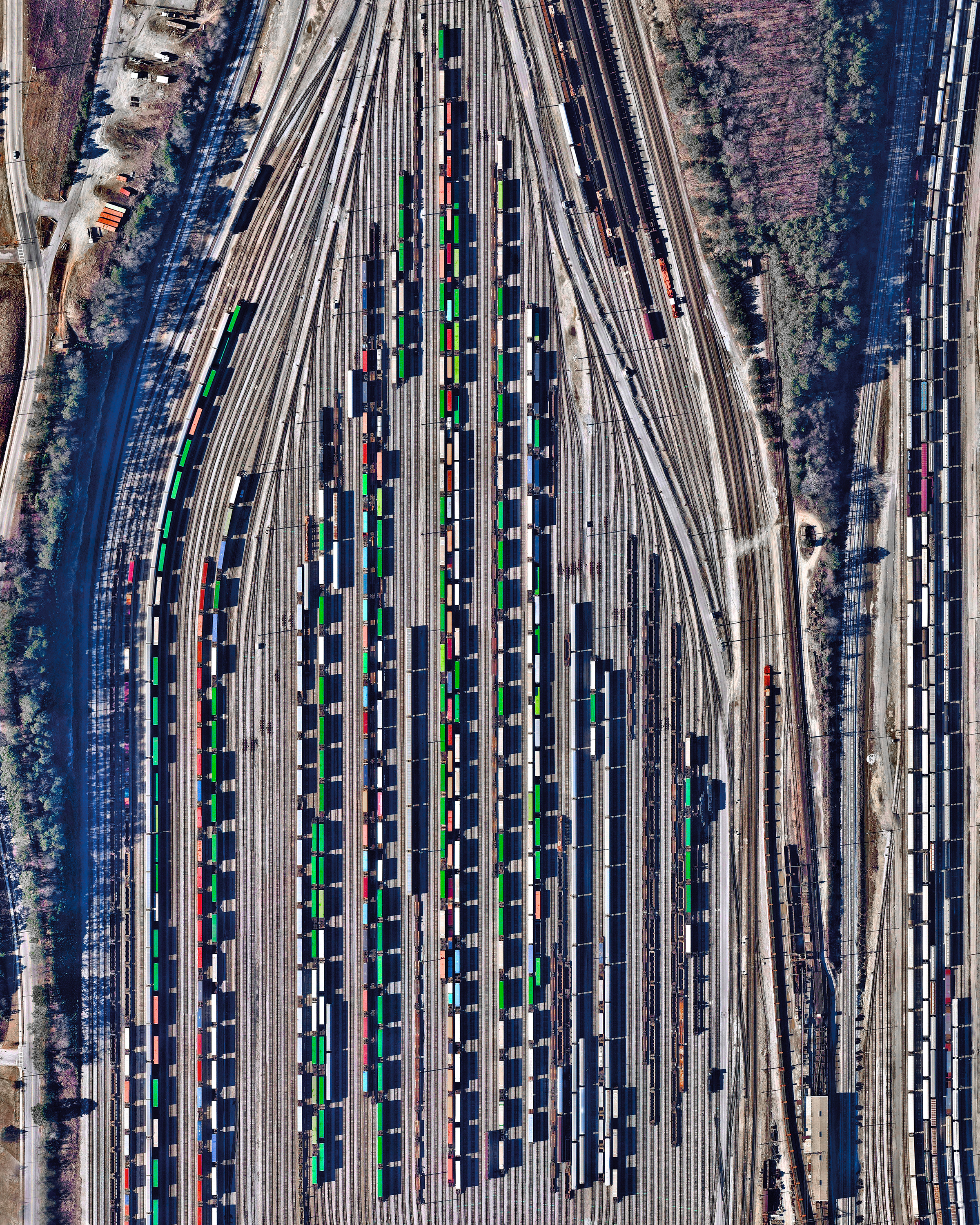 Freight train cars, casting long shadows, are seen in at Inman Yard in Atlanta, Georgia, USA. The facility is operated by Norfolk Southern and serves as one of the major freight hubs on its network that extends for more than 36,000 miles in the United States.