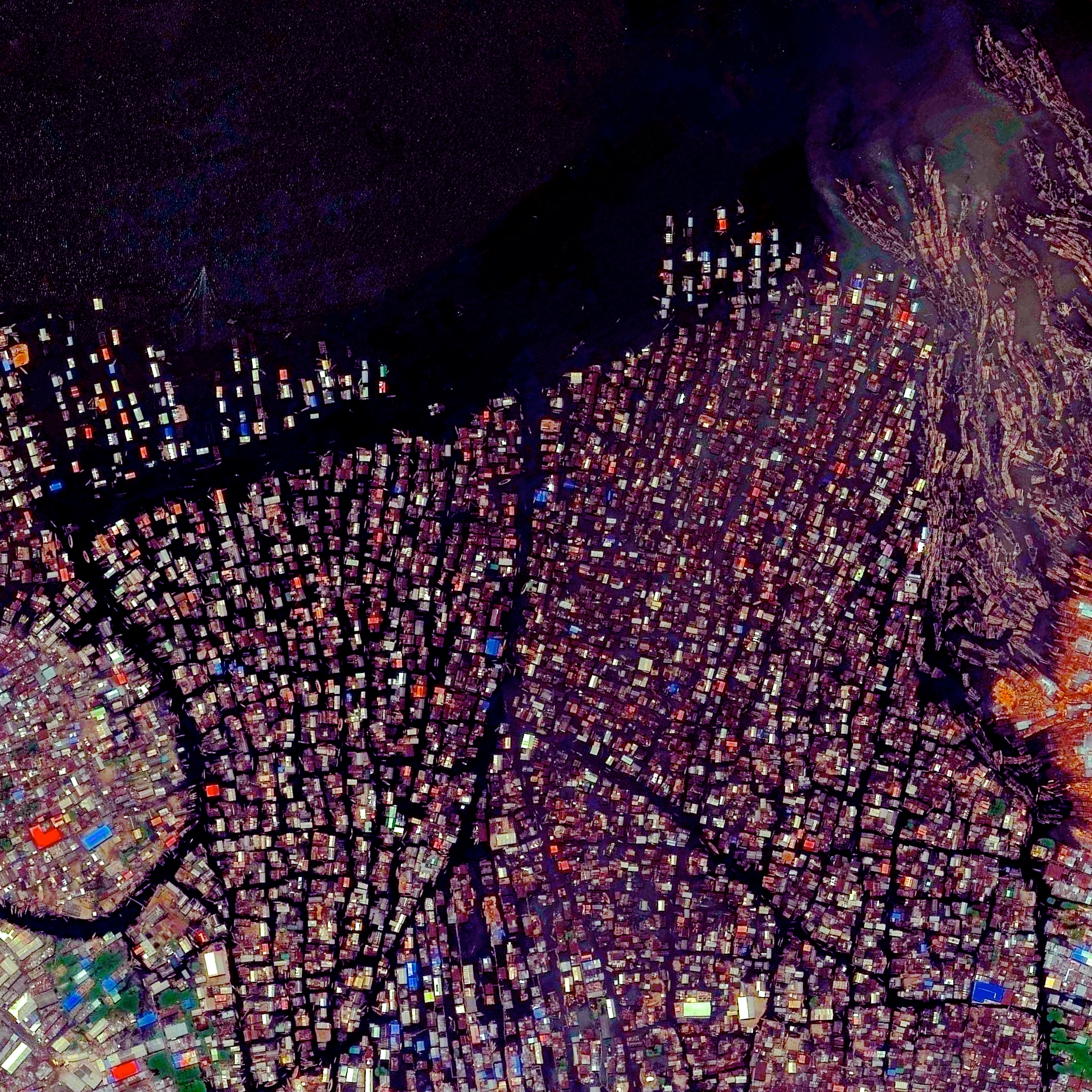 Makoko is a floating village in Lagos, Nigeria. Residents, approximately 85,000 in total, use wooden canoes to navigate the narrow canals and move about the neighborhood. In recent years, there has been great dispute over this area as the government has attempted to demolish homes to allow for the construction of more valuable, waterfront real estate.