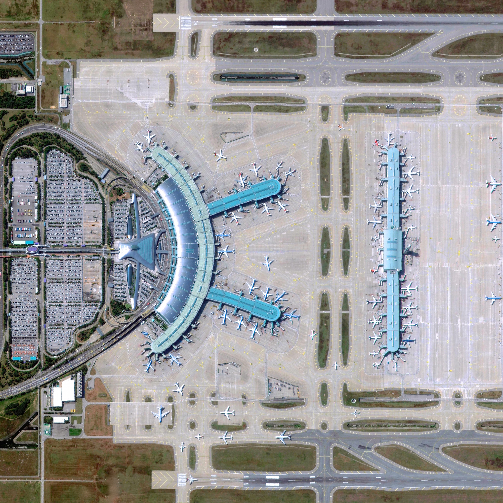 Incheon International Airport is located thirty miles west of Seoul, South Korea. The airport is one of the busiest in the world (23rd by annual passenger traffic at 47+ million) and also one of the most efficient. Airport authorities claim that the average departure and arrival at Incheon take only 19 minutes and 12 minutes, respectively. These times are significantly lower than the international average of 60 minutes for departures and 45 minutes for arrivals.