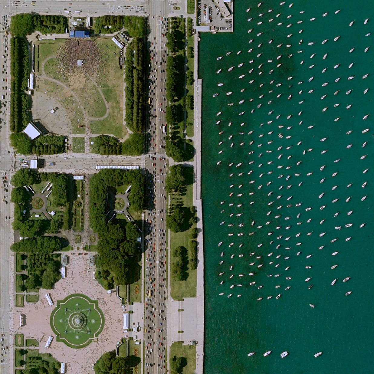The Lollapalooza Music Festival takes places each year at Millennium Park by Lake Michigan in Chicago, Illinois, USA. The event hosts more than 160,000 people over a three-day period.