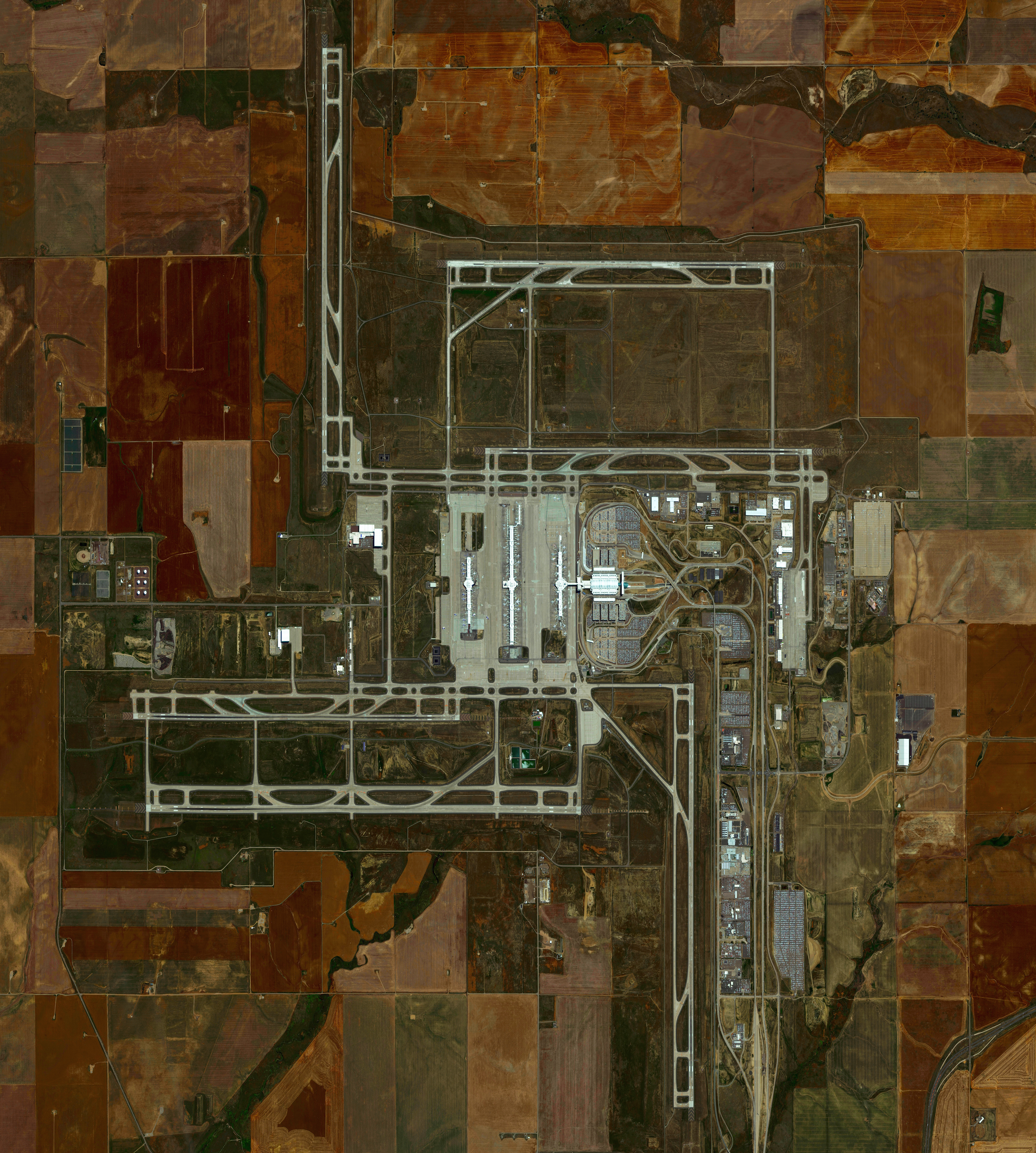 Denver International Airport in Colorado covers more than 33,000 acres (52 square miles), making it is the largest airport in the United States by total land area. The facility is the 18th-busiest airport in the world and the 6th busiest in the United States by passenger traffic with more than 54 million passengers.