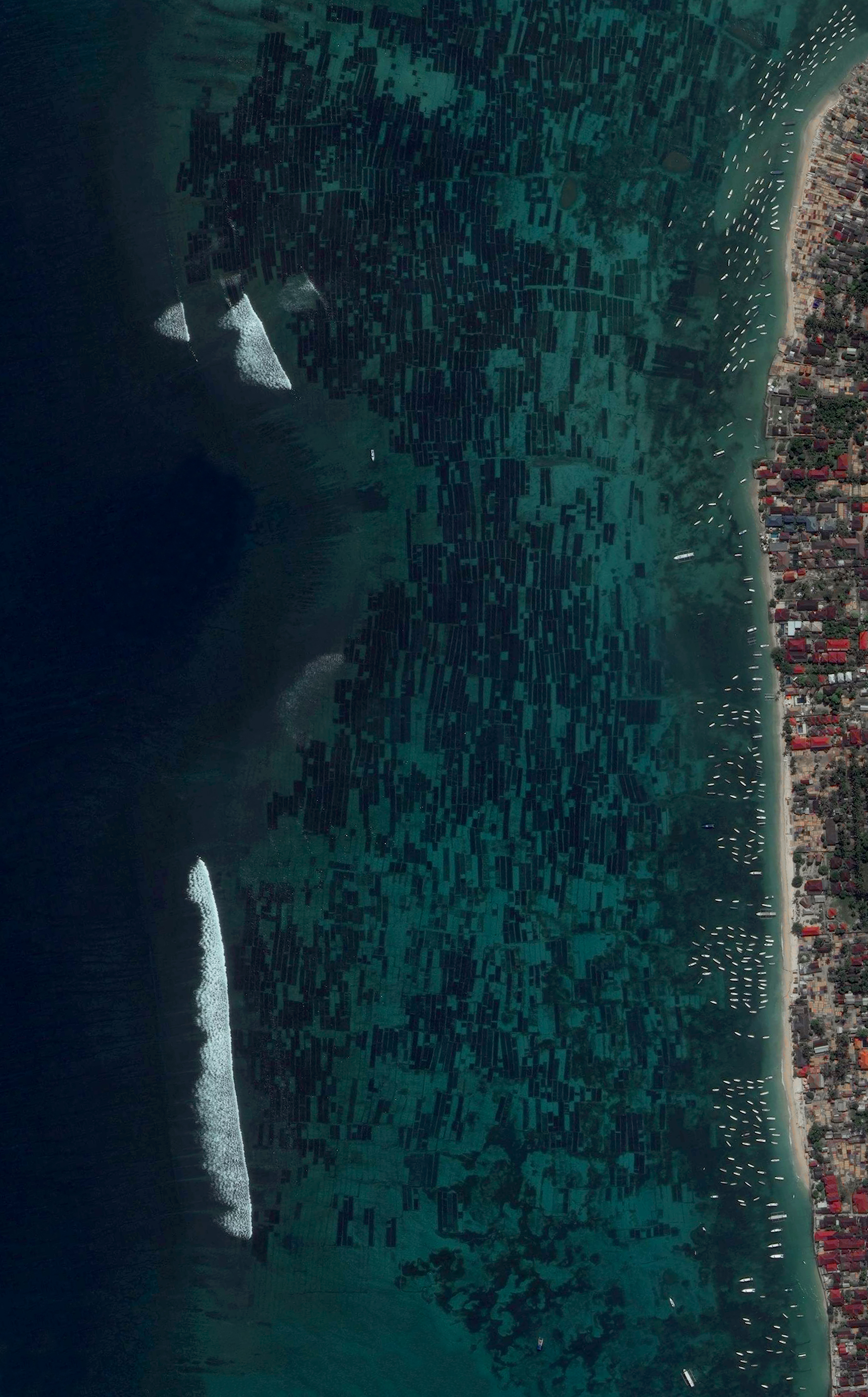 Seaweed farms on Nusa Lembongan – a small island located southeast of Bali, Indonesia – have an average harvest of 50,000 pounds per month. Once the seaweed is extracted from the water, it is dried by the sun for 3-7 days, depending on the season.