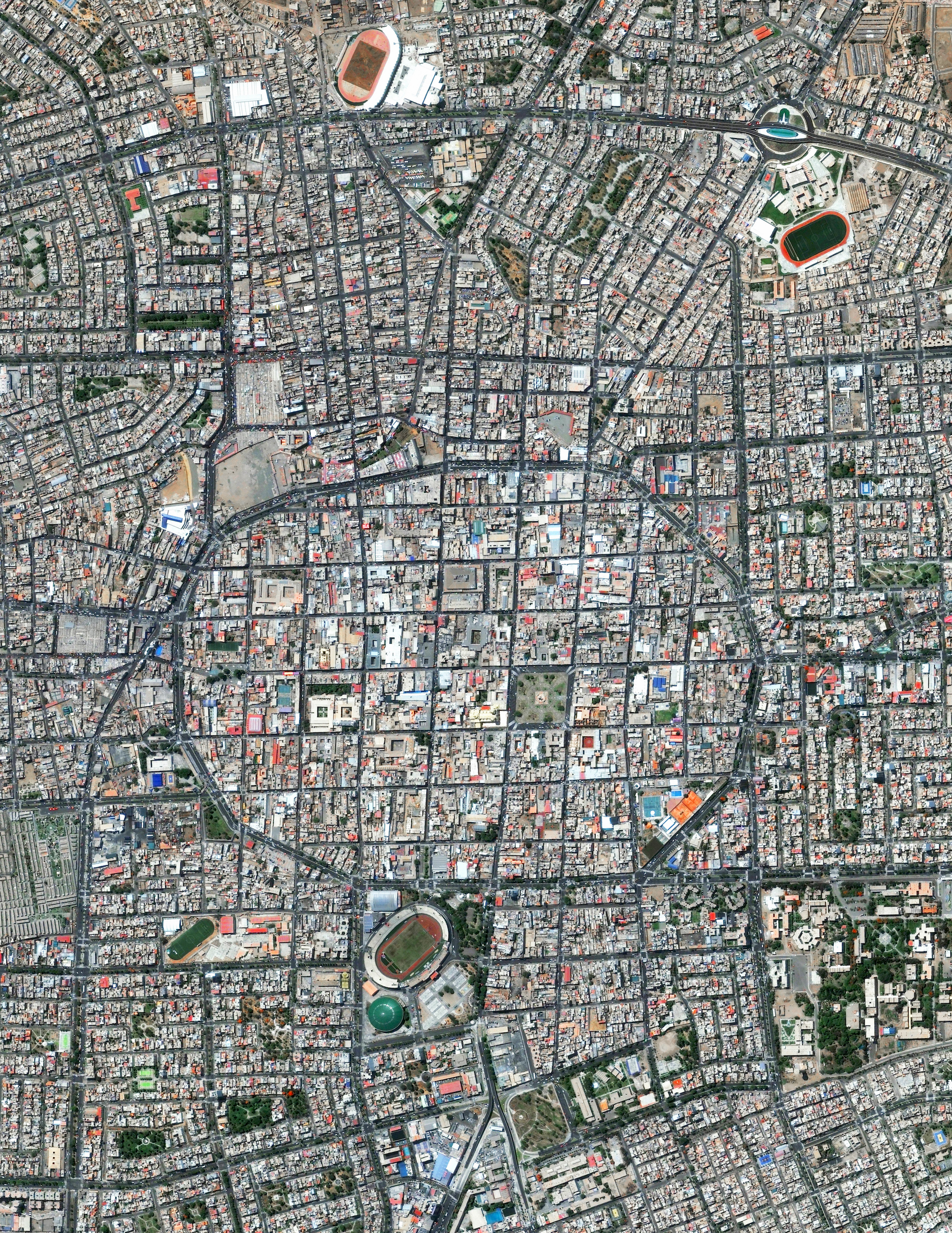 Trujillo is the second largest city in Peru with slightly less than 800,000 residents in its urban area. España Avenue - the circular road that is visible at the center of this Overview - contains the city’s monument area and also traces the historic outline of the defensive wall that was constructed around the city in 1786.