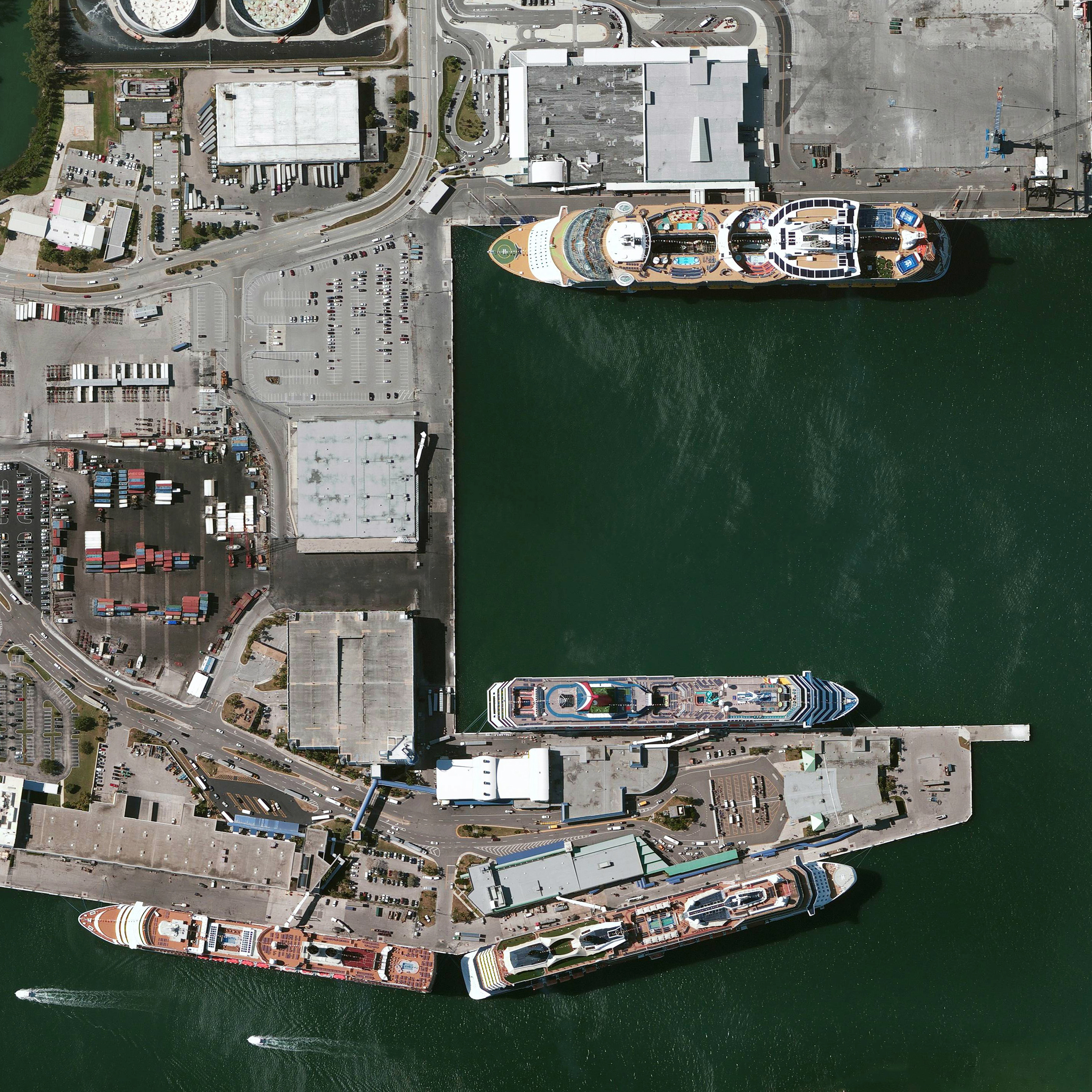 Massive cruise ships are anchored at Port Everglades in Broward County, Florida, United States. The facility is the third busiest cruise port in the world with 3.6 million passengers passing through each year. In total, the worldwide cruising industry accounts for $29.4 billion USD with more than 19 million passengers traveling each year.