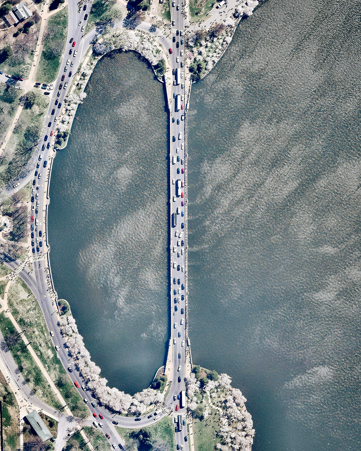 Independence Avenue encircles a section of the Tidal Basin Reservoir in Washington, D.C. Originally named South B Street, this major roadway was constructed between 1791 and 1823 and passes by many of the city’s monuments, including the U.S. Capitol Building, Washington Monument and Lincoln Memorial. In the spring, it is also a popular route for viewing Washington D.C.’s cherry blossoms, some of which can be seen in this Overview.