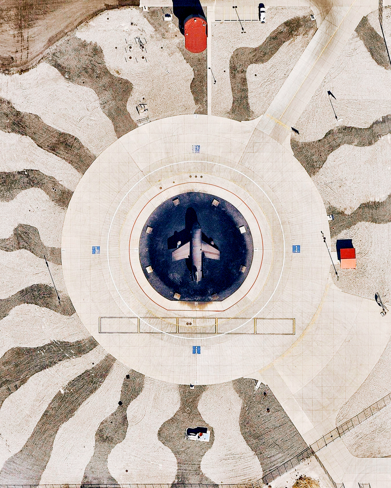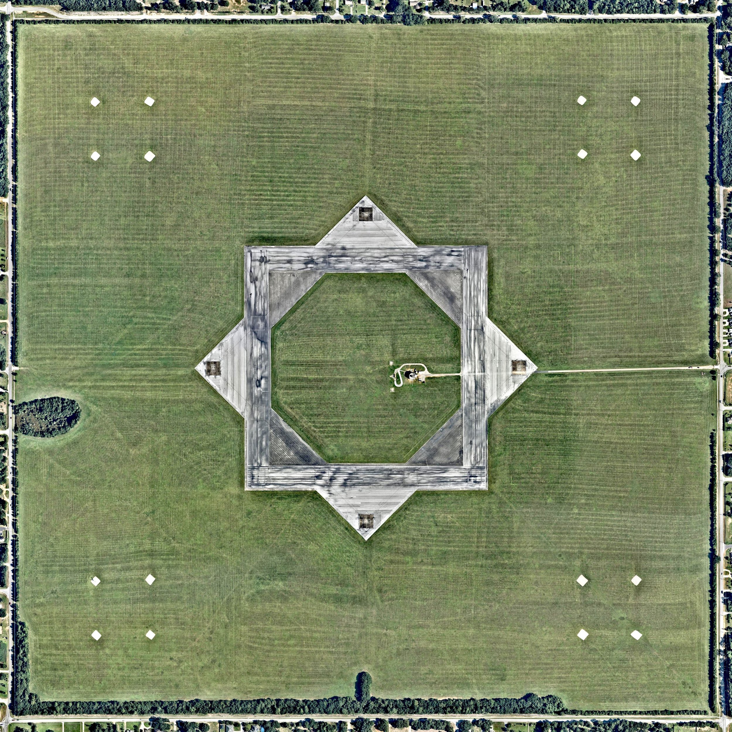 Naval Outlying Field Spencer is a military airport roughly two miles northeast of Pace, Florida, in Santa Rosa County. Centered on 640 acres, its eight equally-sized runways form two overlapping squares: one with corners pointing North, South, East and West, and another that is rotated 45 degrees.