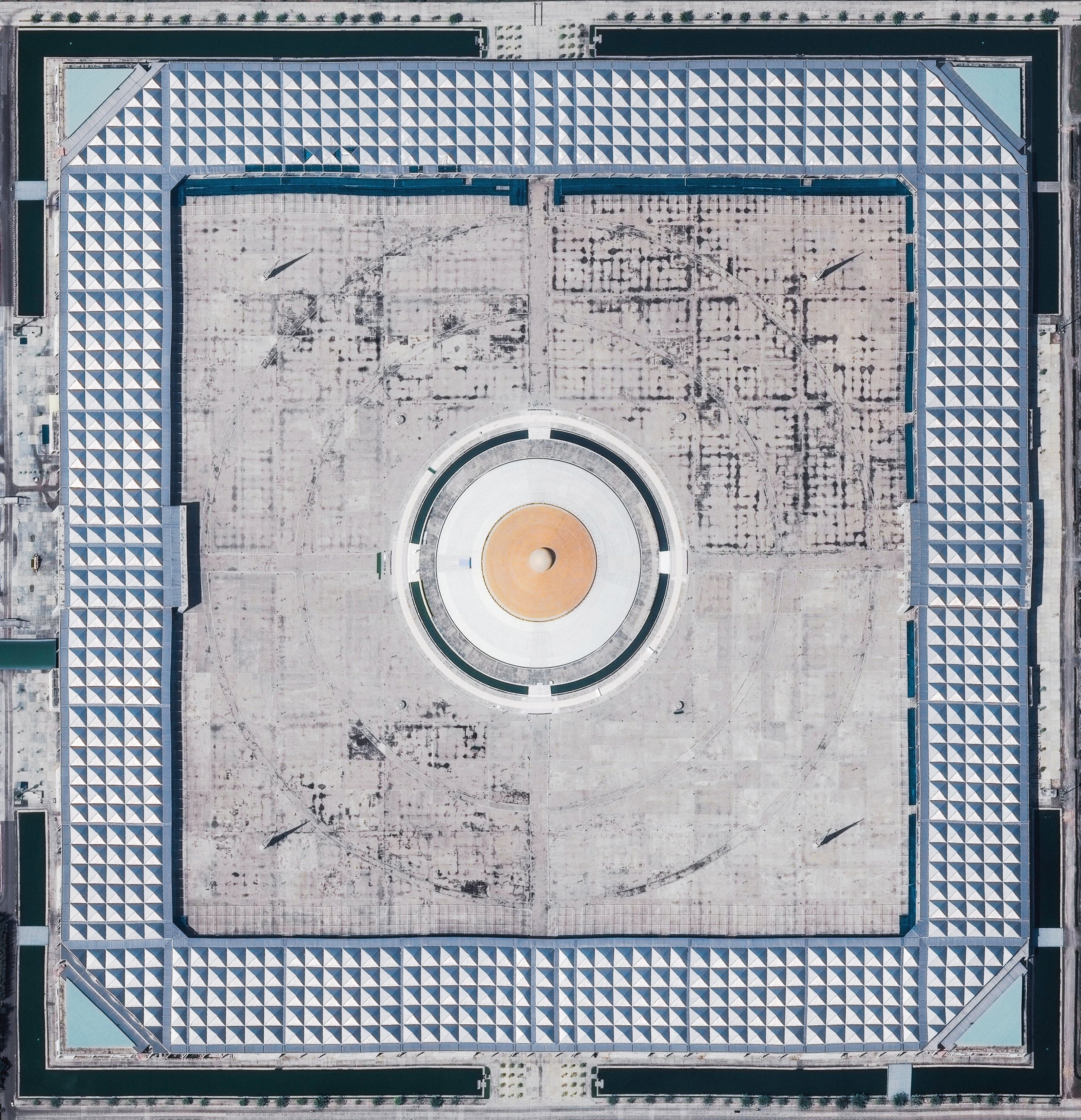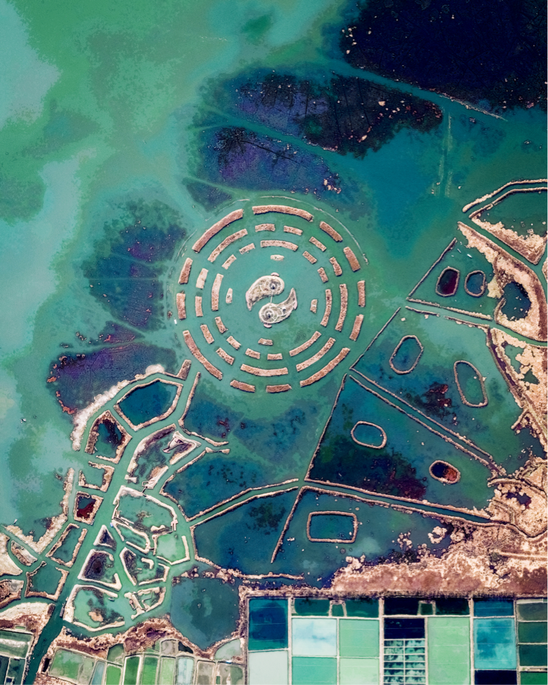 An earth-formed Bagua arrangement is pictured amid the shallow waters of Changdang Lake, in China’s Jiangsu Province. An important symbol in Taoist cosmology, the Bagua consists of a yin-yang surrounded by eight sets of three-line patterns. This particular arrangement, known as “Later Heaven,” is symbolic of achieving balance and accepting change as time passes.