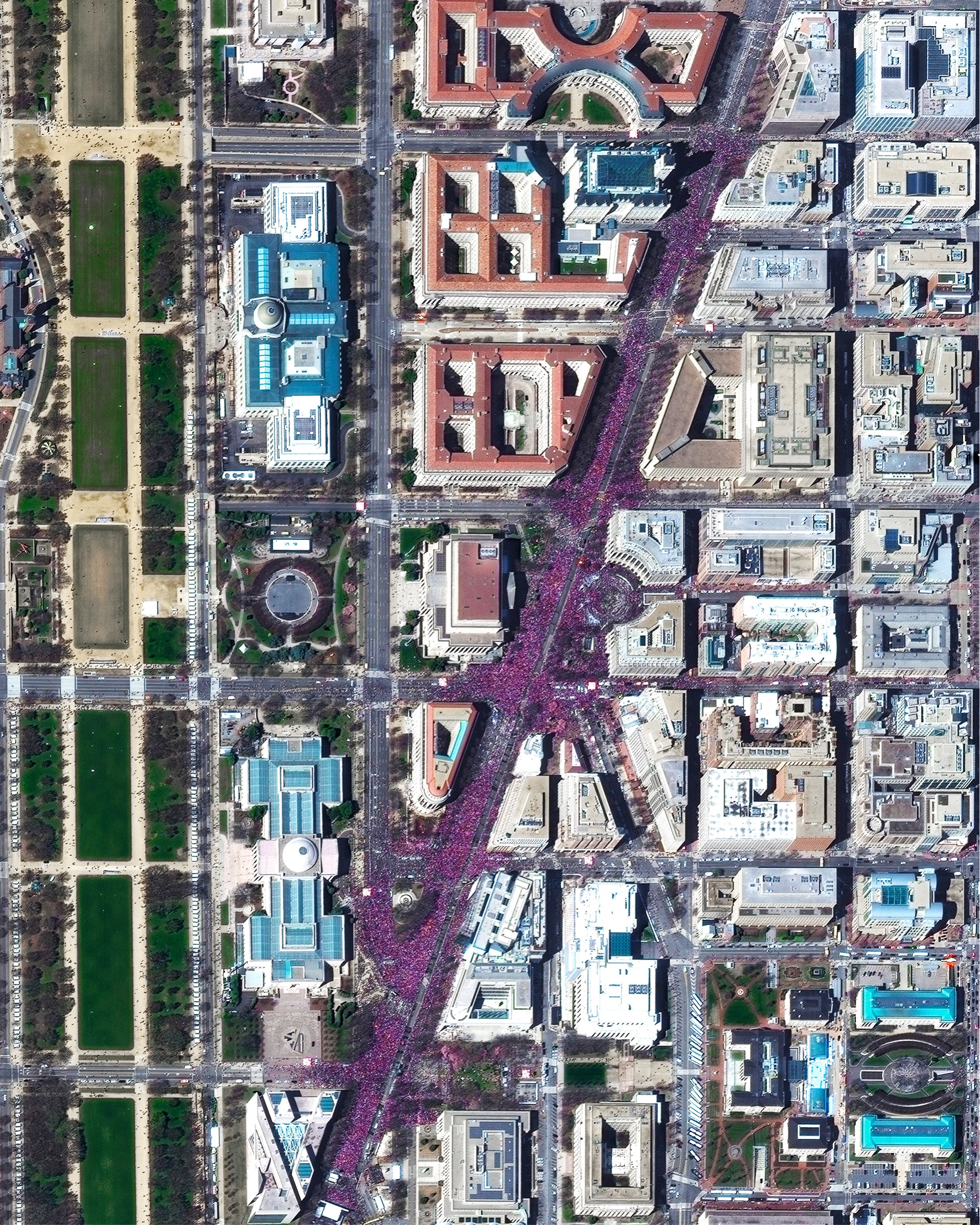 An estimated crowd of 200,000 people attended the March For Our Lives in Washington, D.C., on Saturday. A section of Pennsylvania Avenue, stretching from the U.S. Capitol Building up towards The White House, is seen covered with participants here. Led by students from Marjory Stoneman Douglas High School, the march sought to raise awareness of gun violence and called for increased gun control legislation. In addition to the event in Washington, hundreds of others took place throughout the United States and around the world.