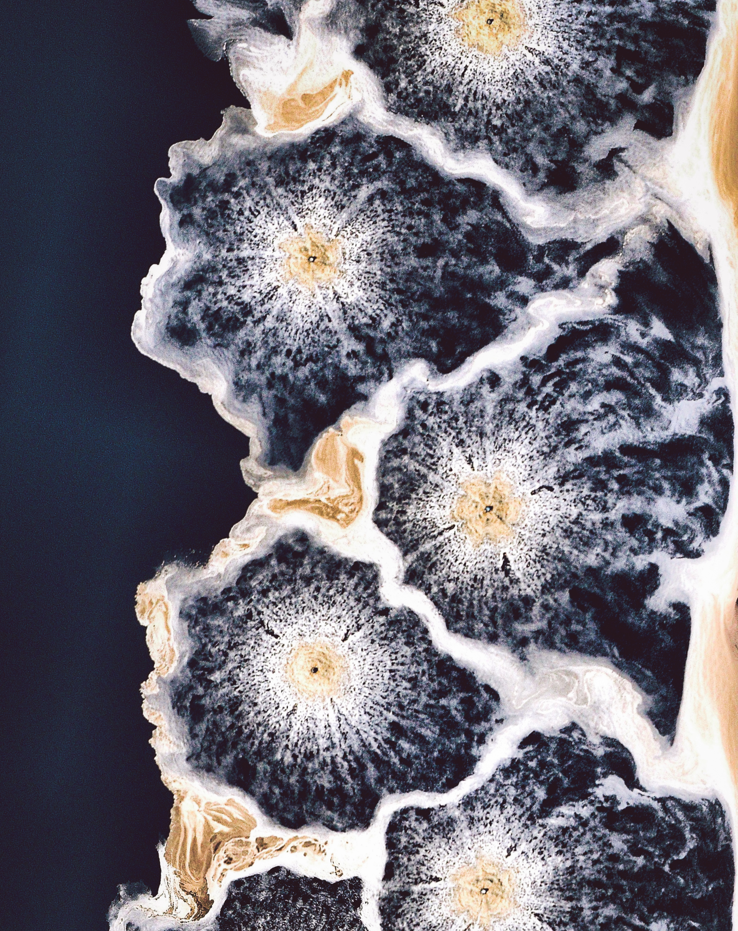 A frozen river is seen here in Kujalleq Municipality, Greenland. At 12,355 square miles (32,000 sq. km), Kujalleq is the smallest district in Greenland by area. Its coat of arms features a ram’s head, which symbolizes one of the area’s most important economic assets — sheep farming.
