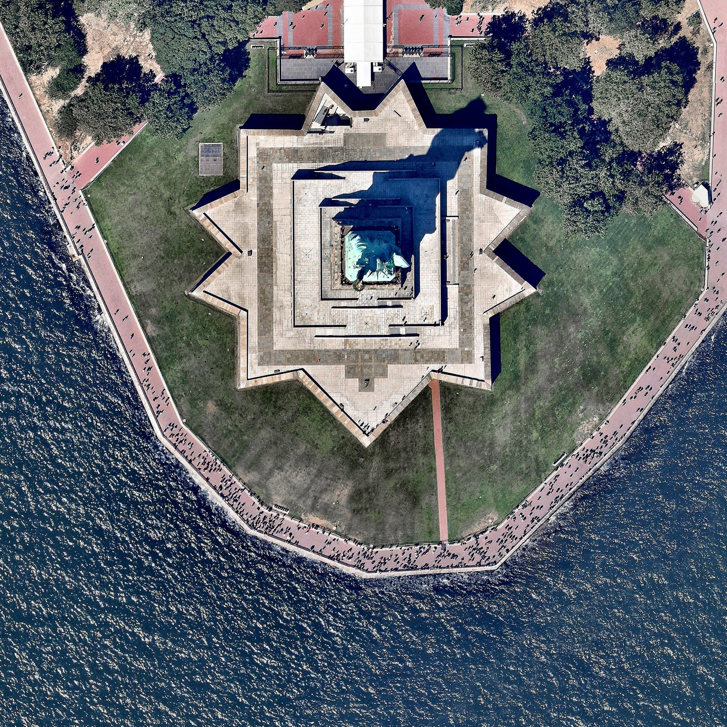 The incredible shot shows the Statue of Liberty in New York City. The colossal copper structure depicts a robed female figure — Libertas, the Roman goddess of liberty — who bears a torch and a tablet upon which is inscribed the date of the American Declaration of Independence — July 4, 1776. The statue is an American icon of freedom and a welcoming sight to immigrants arriving from abroad.