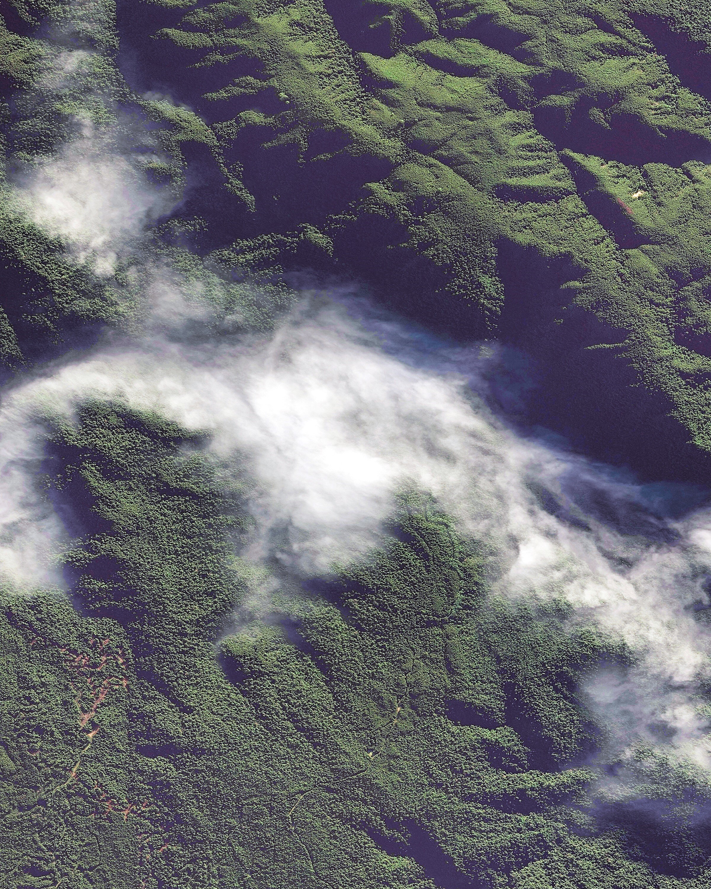 Wispy clouds follow the route of the King River through southwestern Tasmania, Australia. Tasmania is an island state of Australia located 150 miles (240km) off the mainland, and much of its 26,410-square-mile (68,401 sq. km) landmass is still densely forested. In this Overview, the King River flows through the Teepookana Forest Reserve, a protected area that spans more than 1.2 million acres (500,000 hectares).