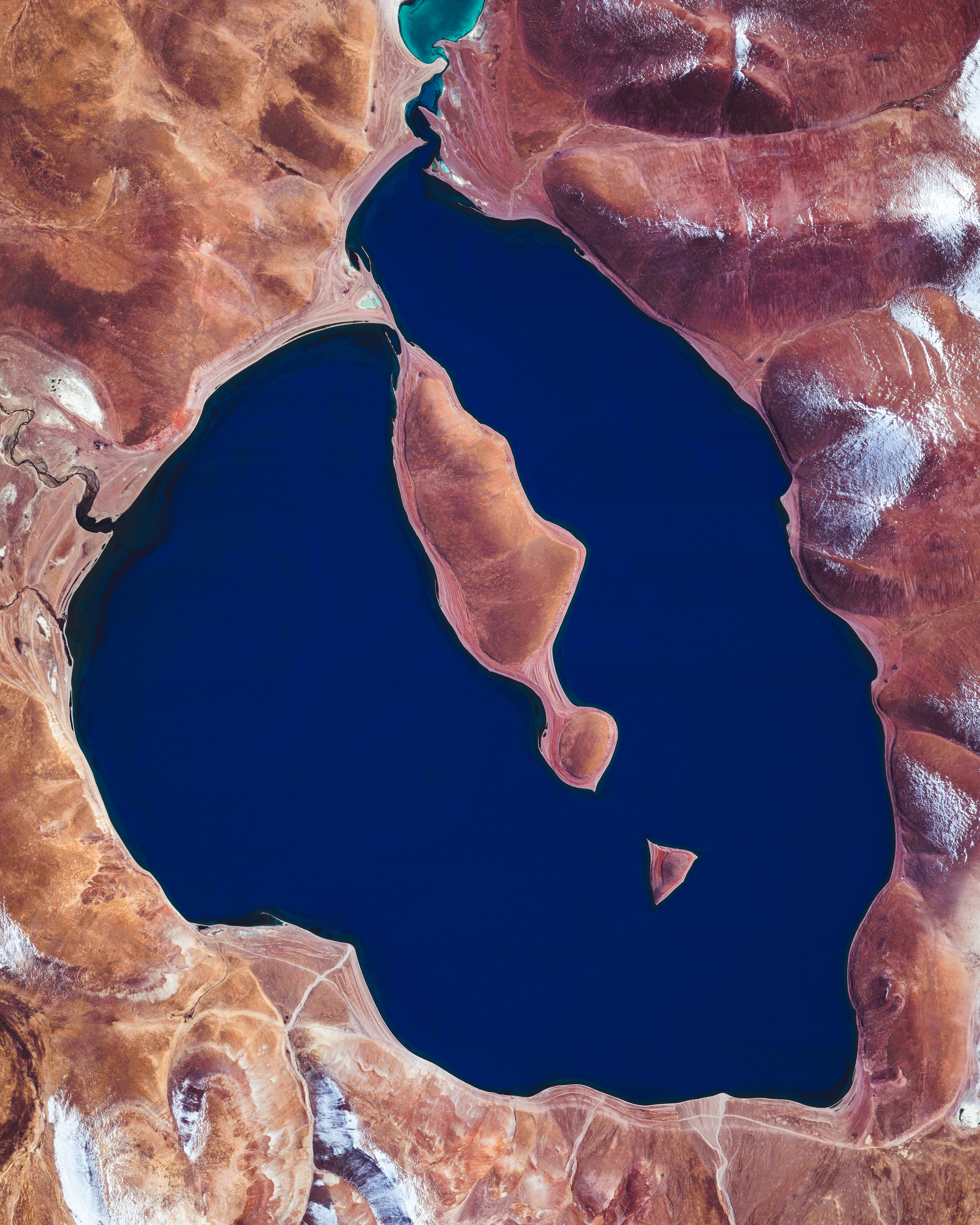 The ultramarine waters of Lake Cuowomo add color to the landscape in Ngamring County, a remote section of the Tibet Autonomous Region in China. This lake, among others in Tibet, were favorite sites of NASA Astronaut Scott Kelly during his "Year in Space" mission in 2015-16.
