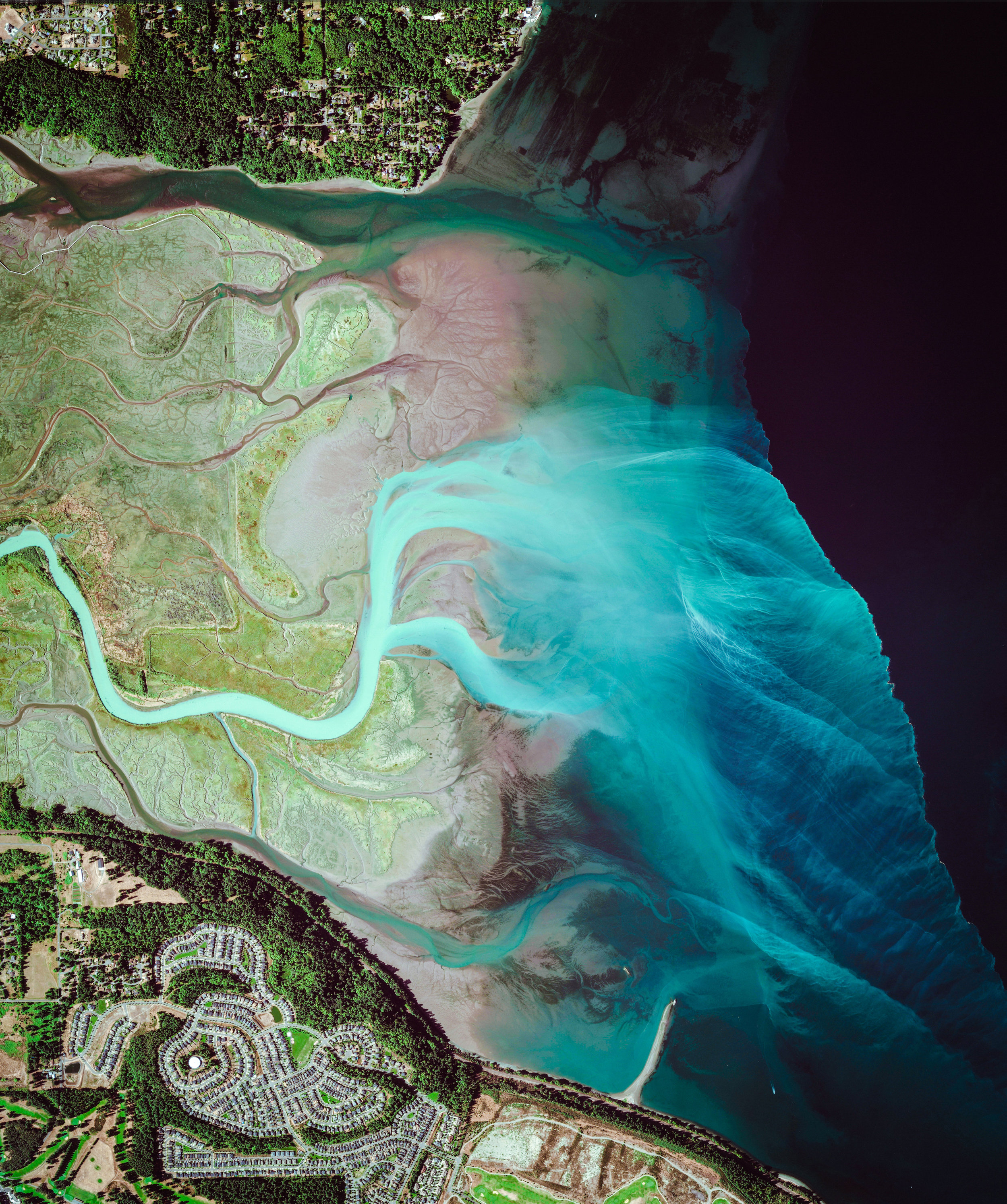 The Nisqually River flows for roughly 81 miles (130 km) through west central Washington, emptying into the southern end of the Puget Sound. The river’s delta, captured in this Overview, is both a National Wildlife Refuge and a National Natural Landmark, providing a habitat for more than 300 different species of fish and wildlife.