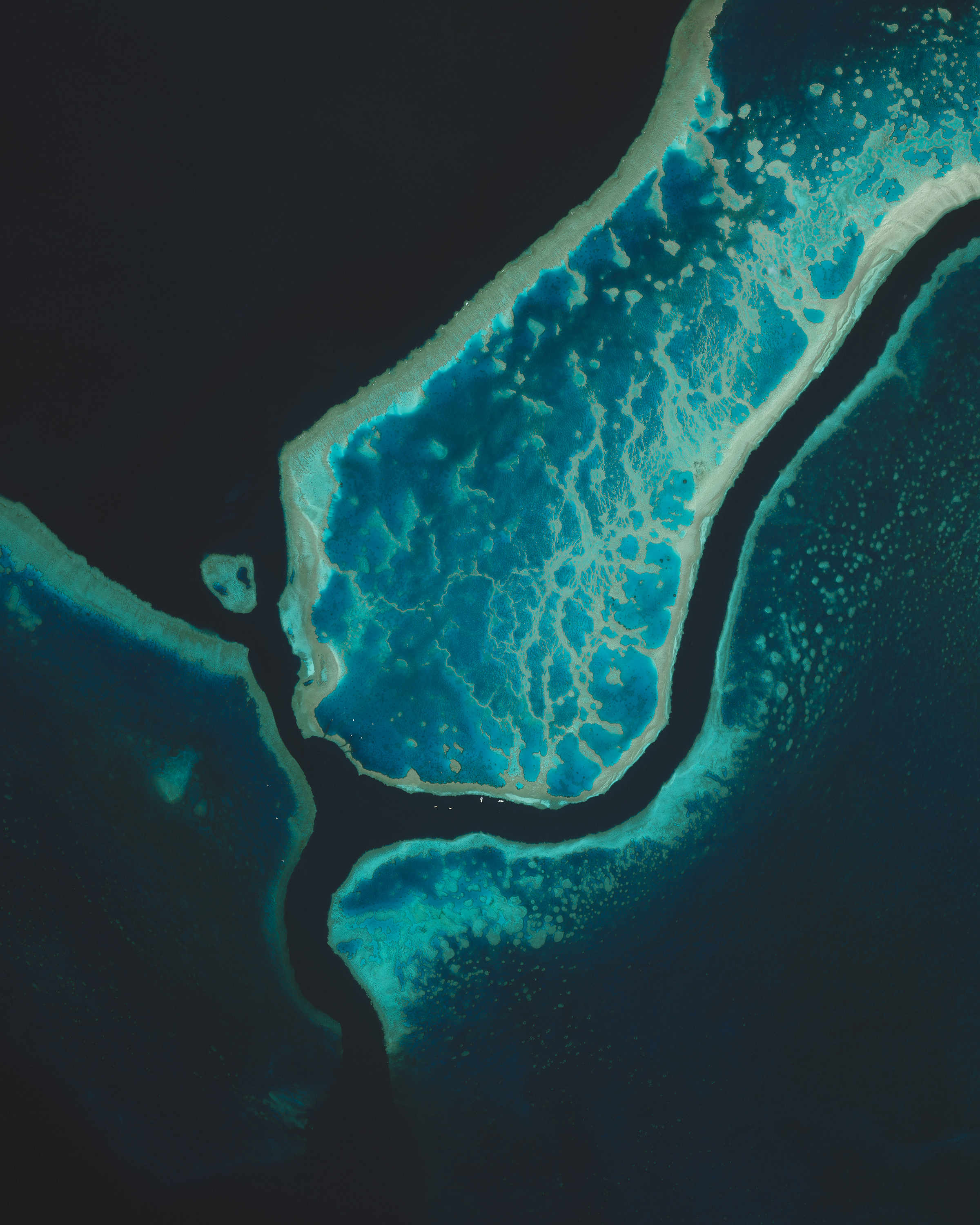 This Overview captures a small segment of the Great Barrier Reef, located off the coast of Queensland, in northeastern Australia. Composed of more than 2,900 individual reefs and 900 islands, the reef system is Earth's largest structure made up of living things. The Great Barrier Reef stretches for more than 1,400 miles (2,300 km) and covers an area of roughly 130,000 square miles (344,400 sq. km).