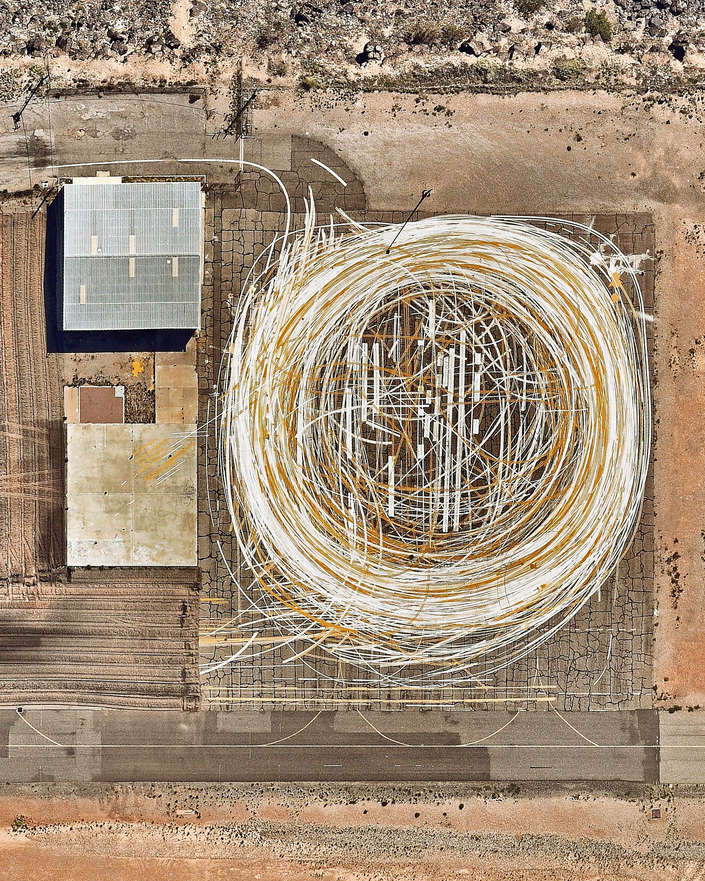 What do you think is happening in this Overview? From our perspective, it looks like someone got excited while driving a road-striping truck. Regardless of how it happened, this vibrant display is found on the grounds of the former St. George Municipal Airport in St. George, Utah. Now closed, the facility was used for general aviation from 1972 until it was replaced by another airport in 2011. Head over to our Instagram and let us know your best guess in the comments!