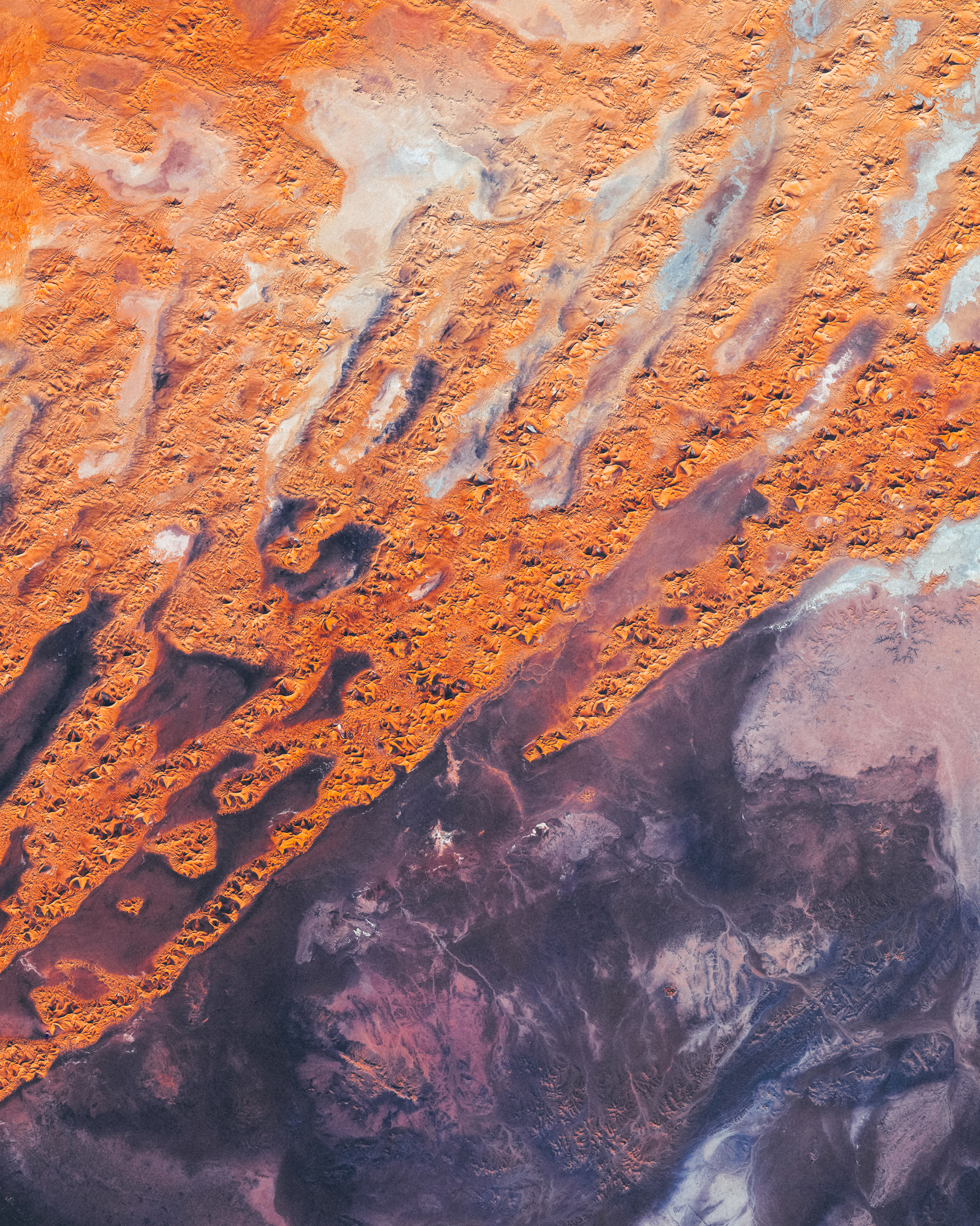 The Erg Iguidi is a large erg in the Tindouf Province of southwestern Algeria. An erg — also called a dune sea — is a broad, flat area of desert covered with windswept sand and little or no vegetation. Part of the greater Sahara Desert, the Erg Iguidi’s narrow, linear dunes stretch for roughly 250 miles (400 km) into northern Mali and Mauritania.