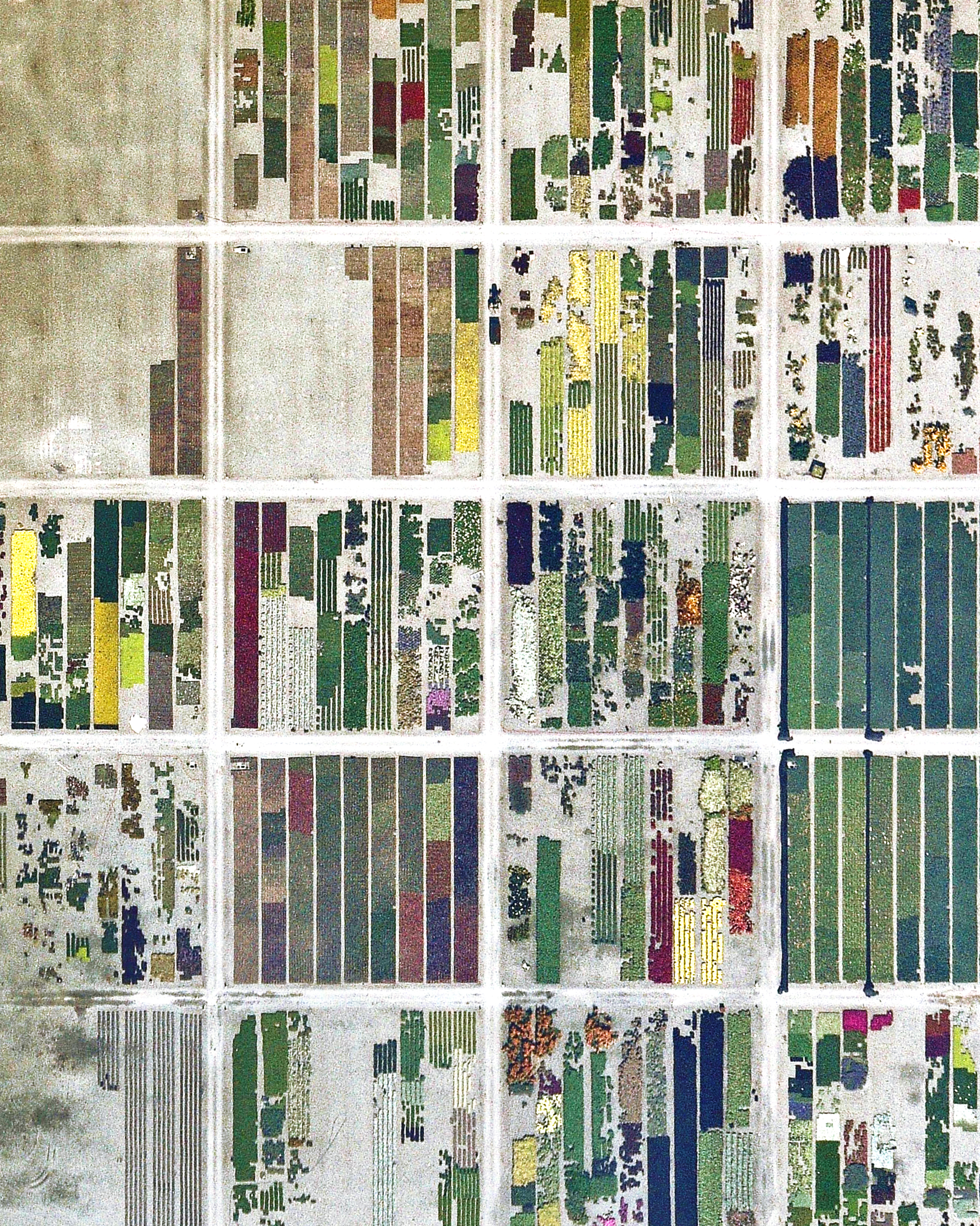 Check out this Overview, which shows some interesting patterns of farmland in Logan County, Colorado. Much of the county's 1,845 square miles (4,780 sq. km) is used for farming, ranching or related activities, making it one of the most productive agricultural counties in the state. Shown in the bottom half of this image is the small town of Peetz, which has more wind turbines (300) than residents (238).