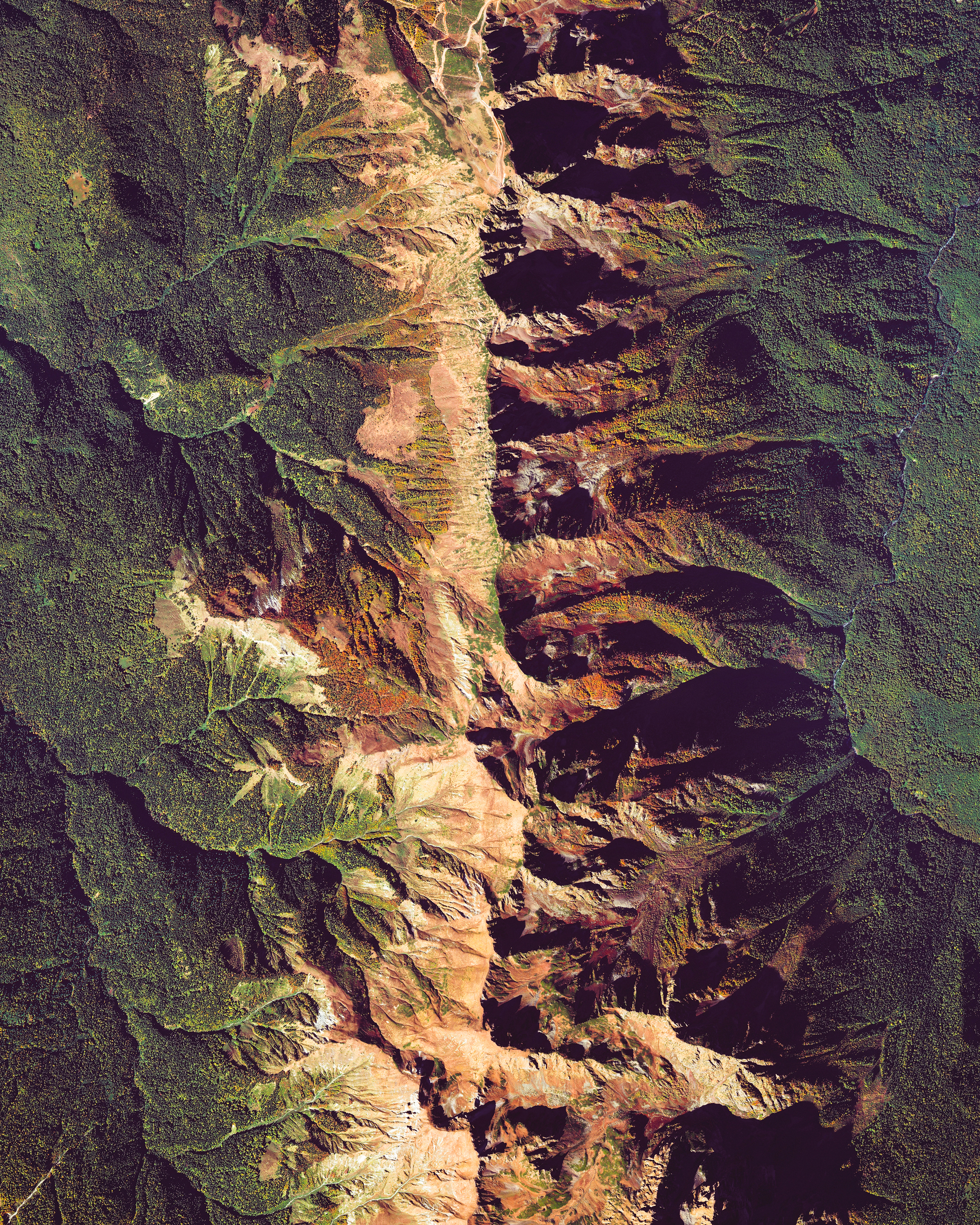 The Greater Caucasus Mountains form a natural border between Russia and Georgia, stretching east to west from the Black Sea to the Caspian Sea. This Overview shows a stretch of mountains in Abkhazia, a de facto and partially recognized republic in northwestern Georgia. Disputes over the status of this region led to the War in Abkhazia from 1992 to 1993 and remains a central issue in Georgia-Russia relations today.