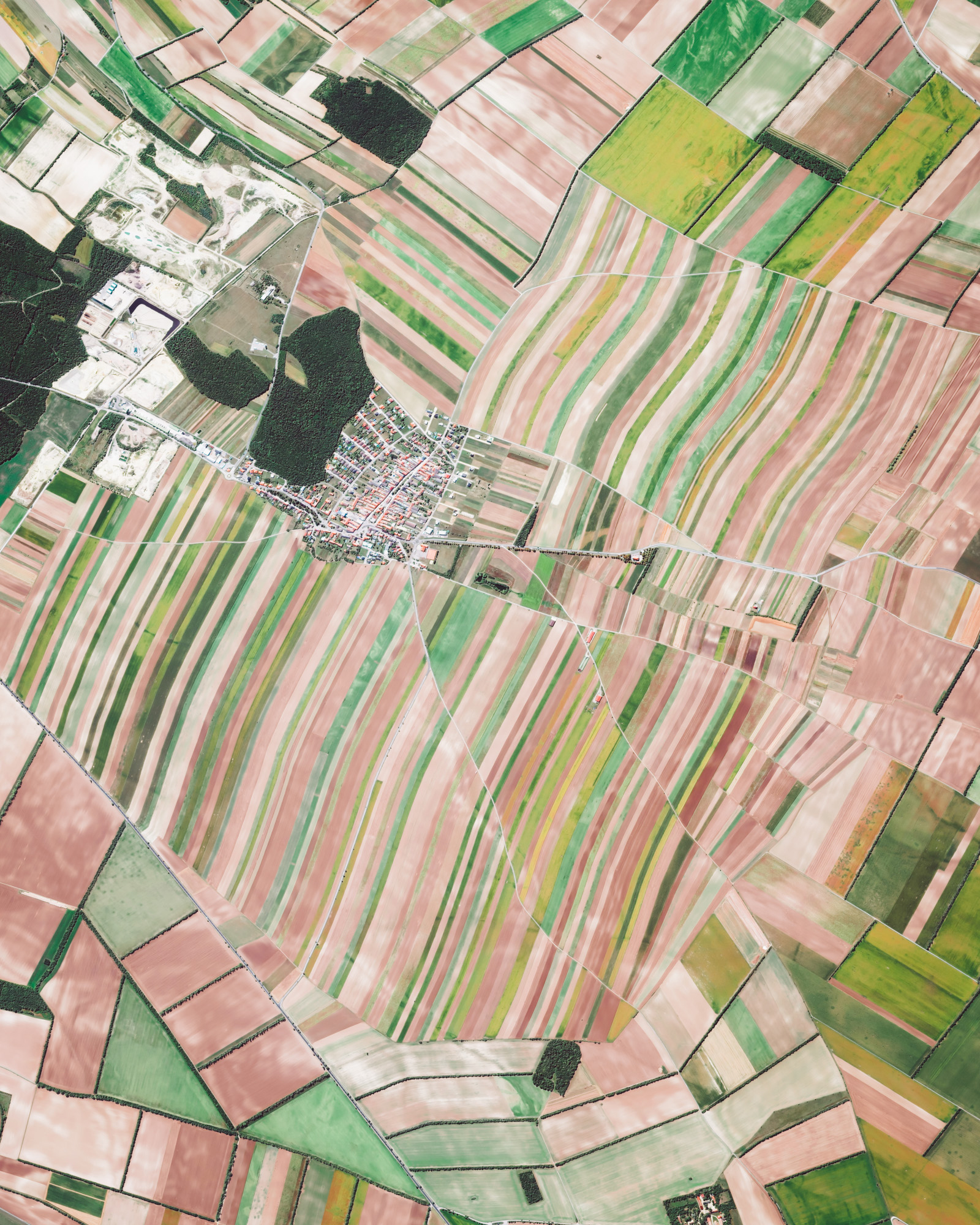 Colorful fields surround Rauchenwarth, a small municipality in eastern Austria. Located roughly 10.5 miles (17 km) outside of Vienna, Rauchenwarth has a population of about 700 people. Cold, wet winters and hot, dry summers make this region ideal for growing corn, wheat, barley, rye, sugar beets, sunflowers, and soybeans.