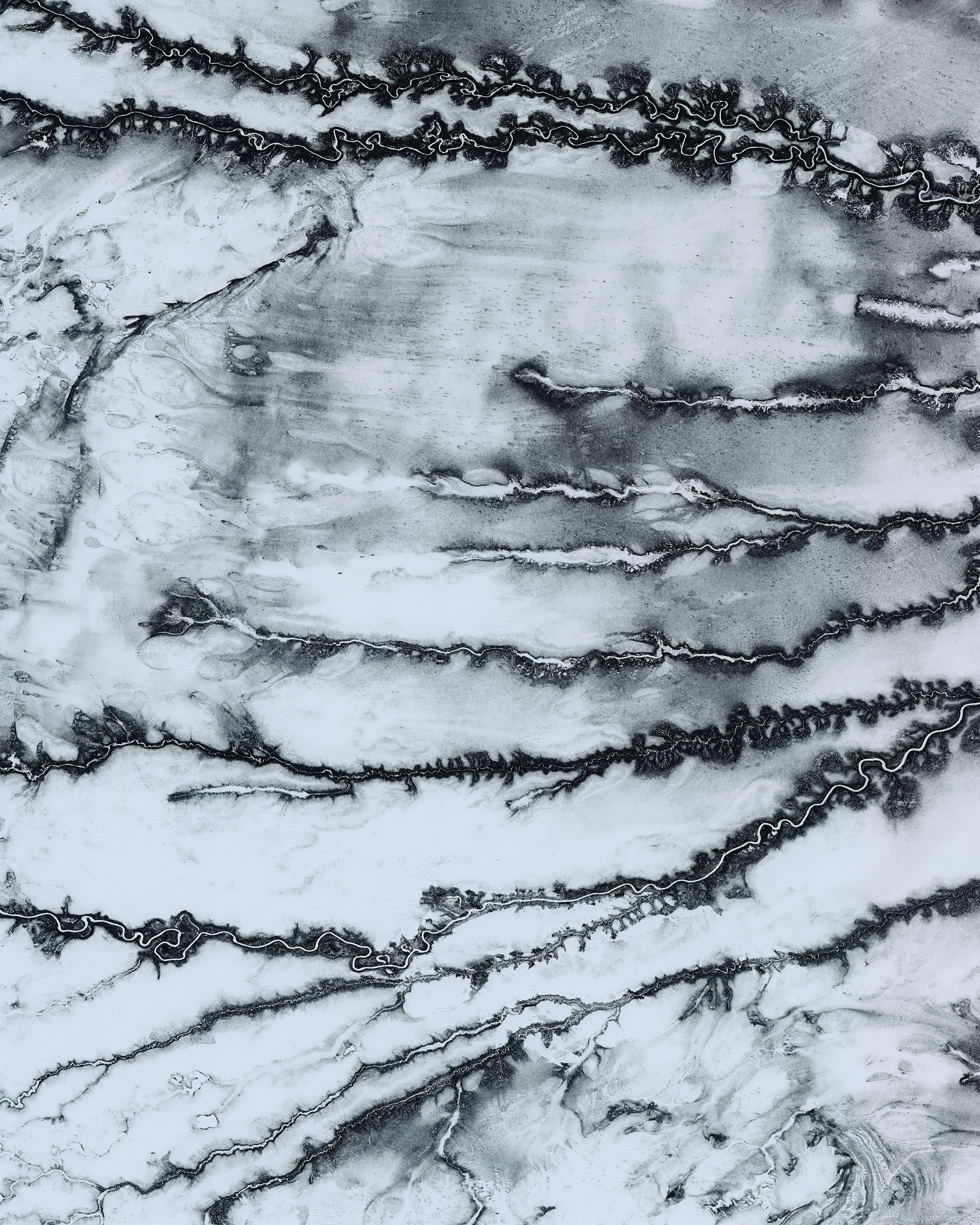 Tributaries of the Moose River snake across snowy terrain near Moosonee, a town in northern Ontario, Canada. This area is part of the Hudson Plains Ecozone, a sparsely populated subarctic region extending from the western coast of Quebec to the coast of Manitoba. The ecozone contains the largest continuous wetland in the world, including the Moose River’s 41,900-square-mile (108,500 sq. km) drainage basin.