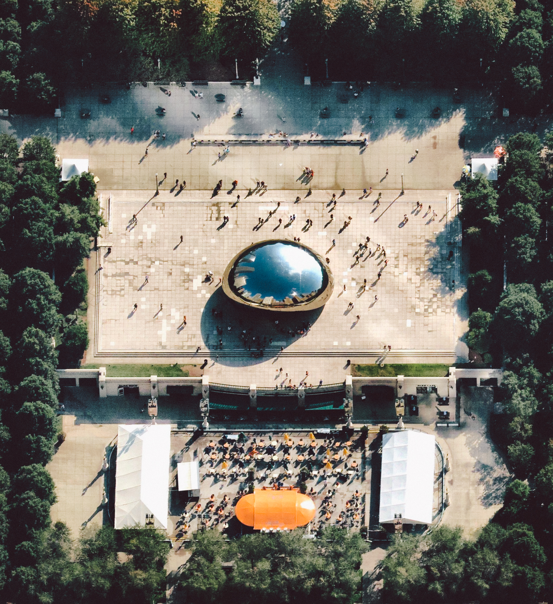 Cloud Gate -- nicknamed "The Bean" because of its shape -- is a public sculpture in the center of AT&T Plaza at Millennium Park in Chicago, Illinois. Created by Indian-born British sculptor Sir Anish Kapoor, it is made up of 168 stainless steel plates welded together and polished heavily to remove any seams. It is one of the most visited and photographed tourist attractions in Chicago, receiving upwards of 25 million visitors in 2017.