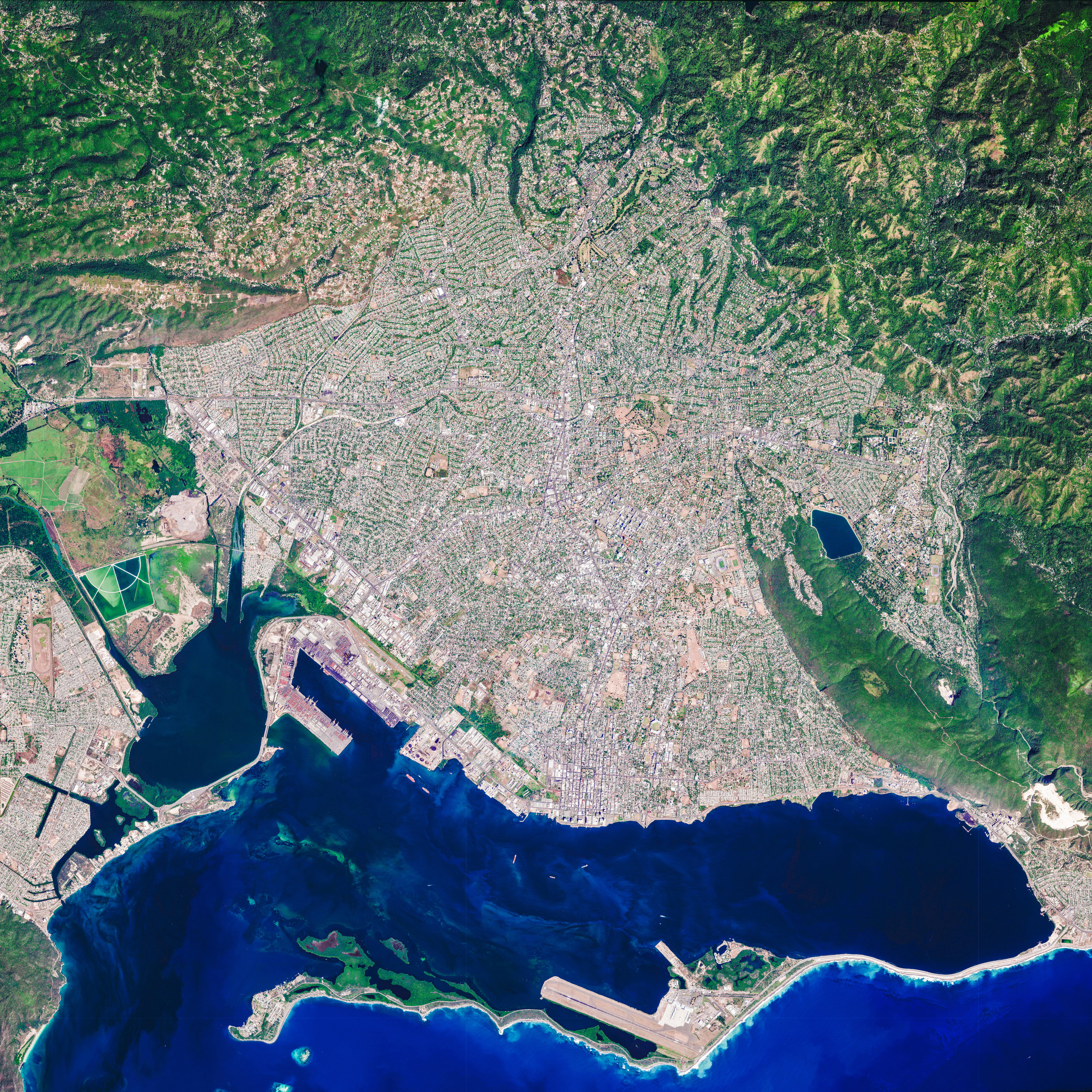 This Overview captures cargo ships and tankers moving through Tanjung Perak, the main port in Surabaya, Indonesia. Recent expansion and dredging here has deepened the waters to 16 meters (52.5 feet) and enabled a larger generation of containers ships to pass through safely. The facility’s principal exports are sugar, tobacco, and coffee.