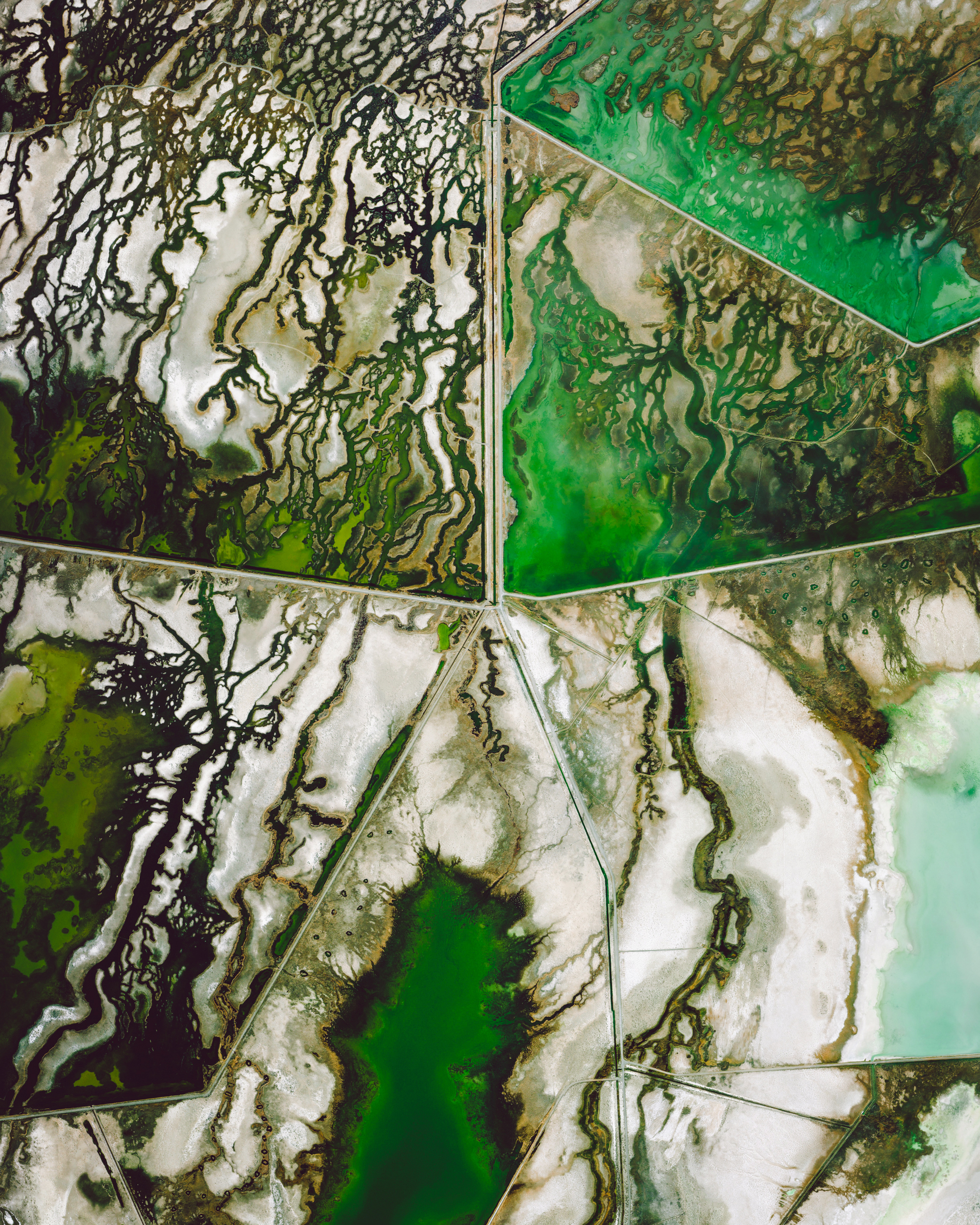 Copper residue stains the walls of the Bingham Creek Reservoir in Salt Lake County, Utah. The reservoir is owned by the Kennecott Utah Copper Corporation and is used to store wastewater from the nearby Bingham Canyon Mine, one of the largest open-pit copper mines in the world.