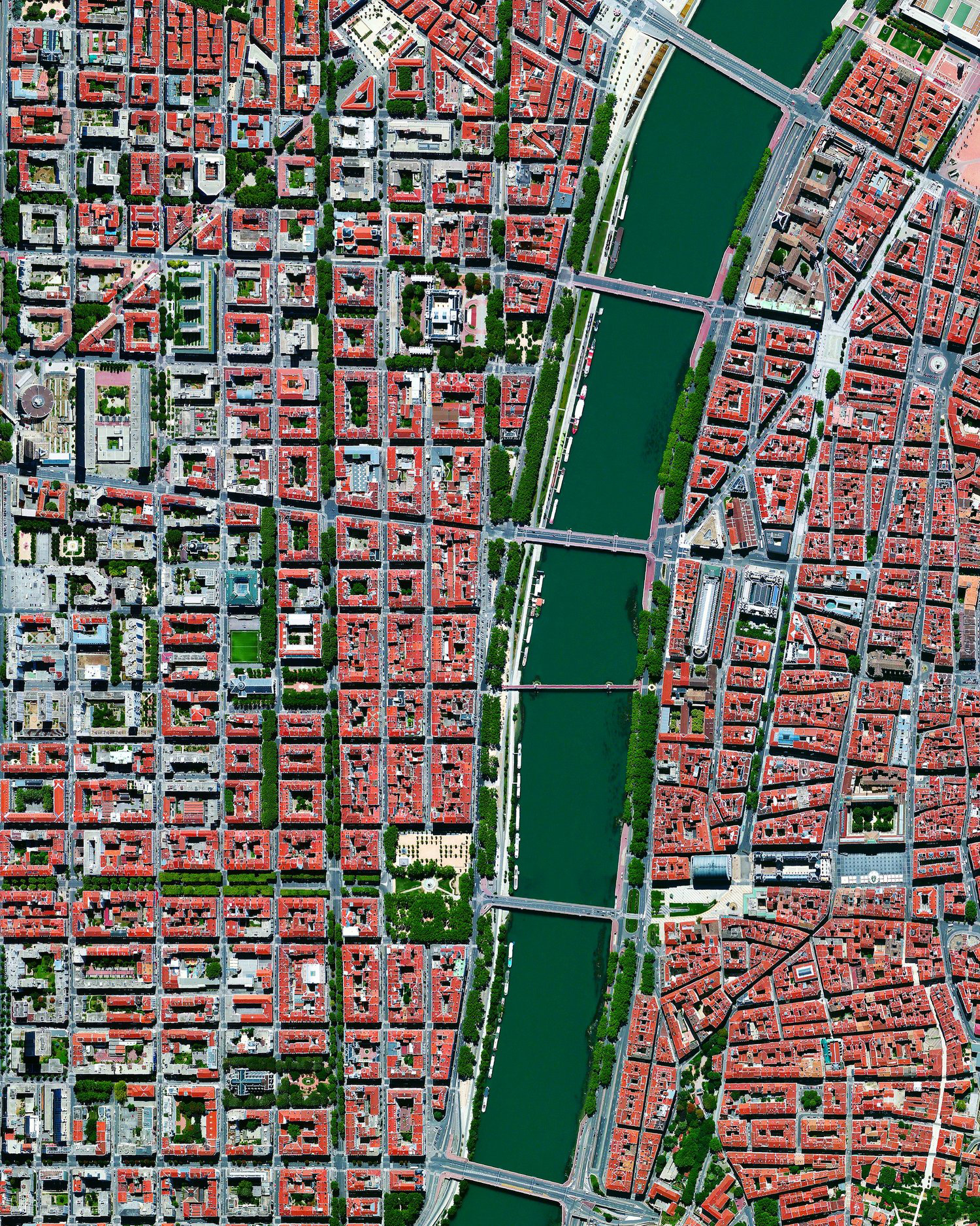 Lyon is the third largest city in France, situated at the convergence of the Rhône and Saône Rivers. A section of the city, split by the Rhône, is seen in this Overview. Lyon is often recognized as the birthplace of cinema — pioneered by the Lumière brothers here in 1895 — as well as a major culinary center.