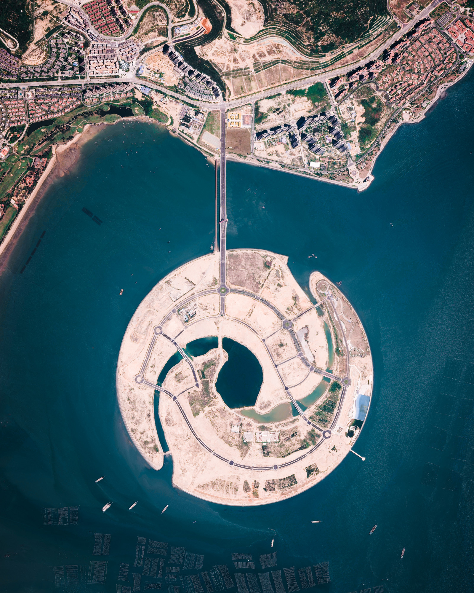 Shuangyu Island, also known as Double Fish Island, is a man-made island under construction in Xiamen Bay, Southeast China. Its design, which depicts a pair of dolphins circling each other, calls for roughly 8.8 billion gallons (33.3 billion liters) of reclaimed land to create. The island is slightly more than one mile (1.68 km) in diameter with about 7 miles (11.4 km) of coastline. When finished, it will house a high-end ecological resort.
