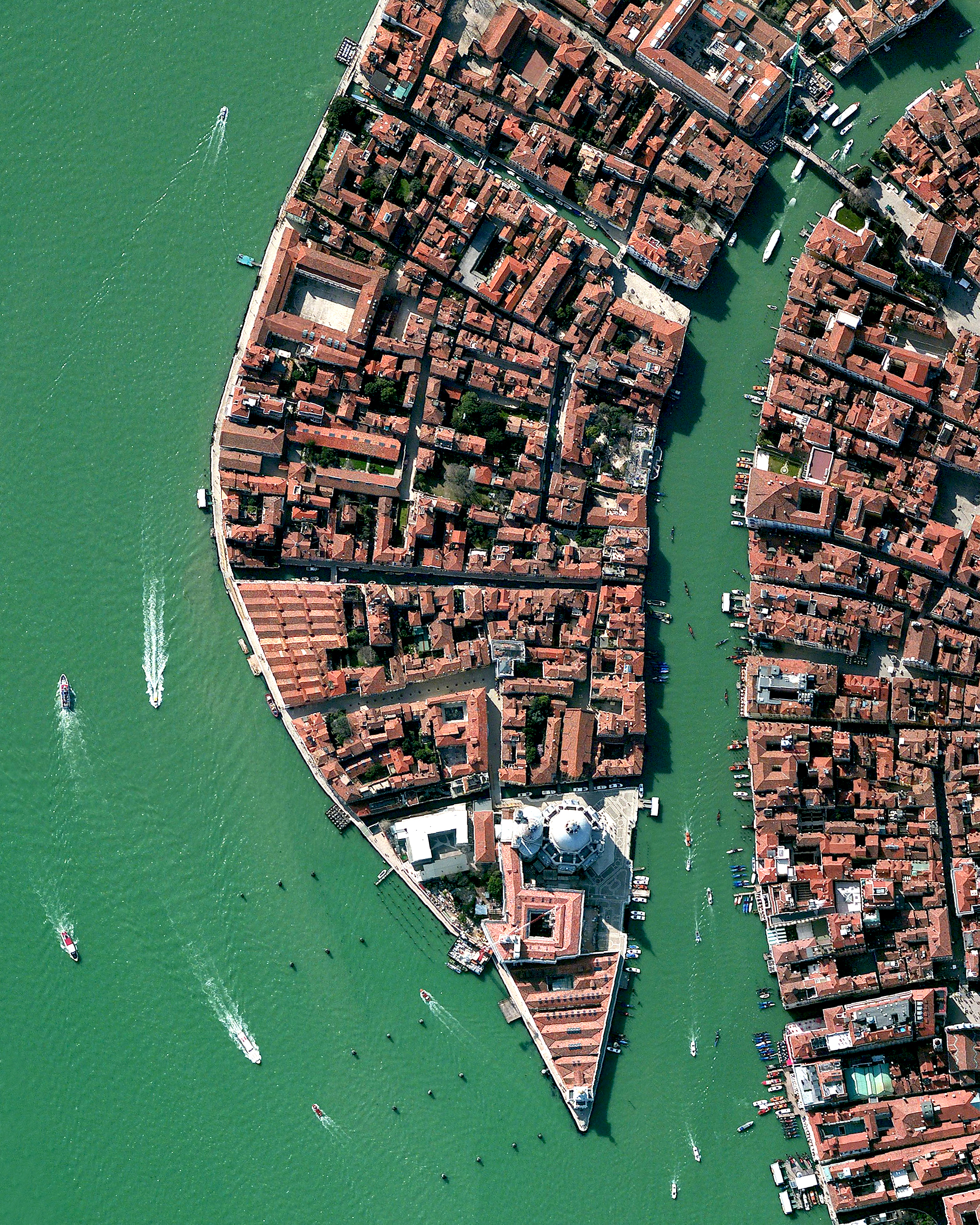This Overview shows part of the Dorsoduro sestiere in Venice, Italy. A sestiere — which comes from the Italian “sesto,” meaning sixth — is a subdivision of an Italian town or city divided into six districts. Dorsoduro is Venice’s university district and is filled with bars, restaurants, indie shops, vintage fashion boutiques and art galleries, such as the Peggy Guggenheim Collection.