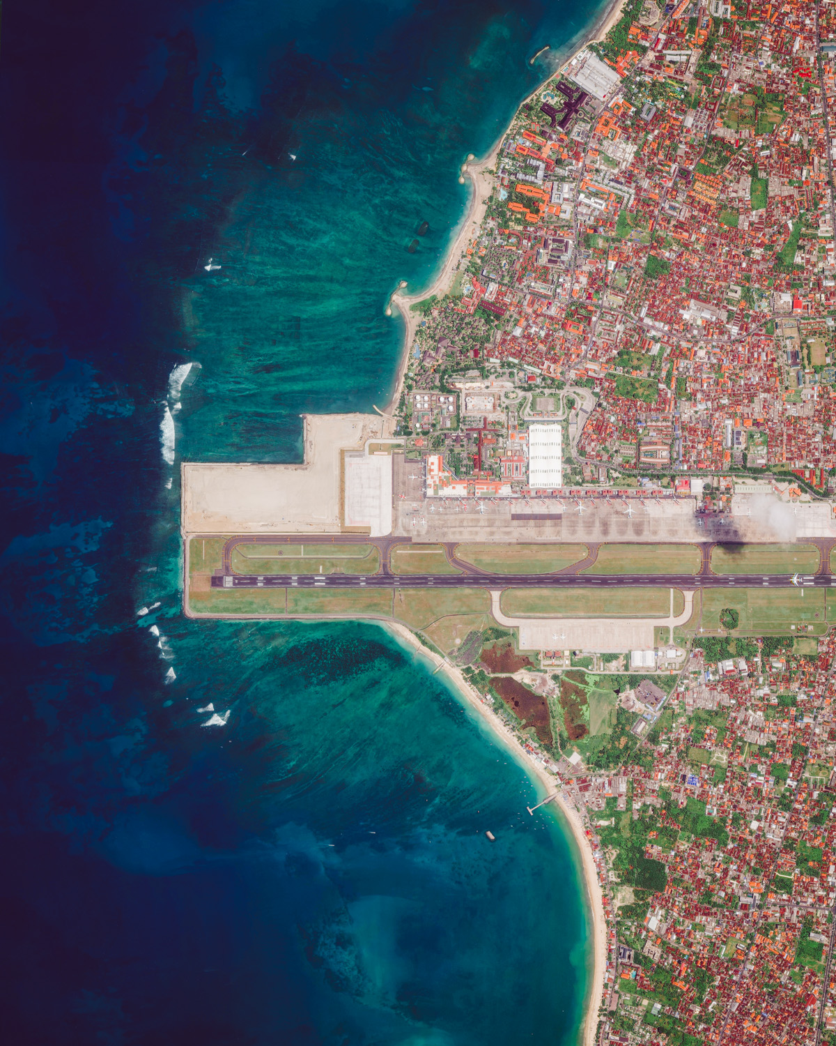 Kuta (also known as Kuta Village or Kuta Town) is a village in southern Bali, Indonesia. Originally a small fishing community, it was one of the first places in Bali to see substantial tourism and has become internationally known as a beach resort town. Kuta sits just north of Ngurah Rai International Airport, which is shown at the center of this Overview jutting out into the Indian Ocean.