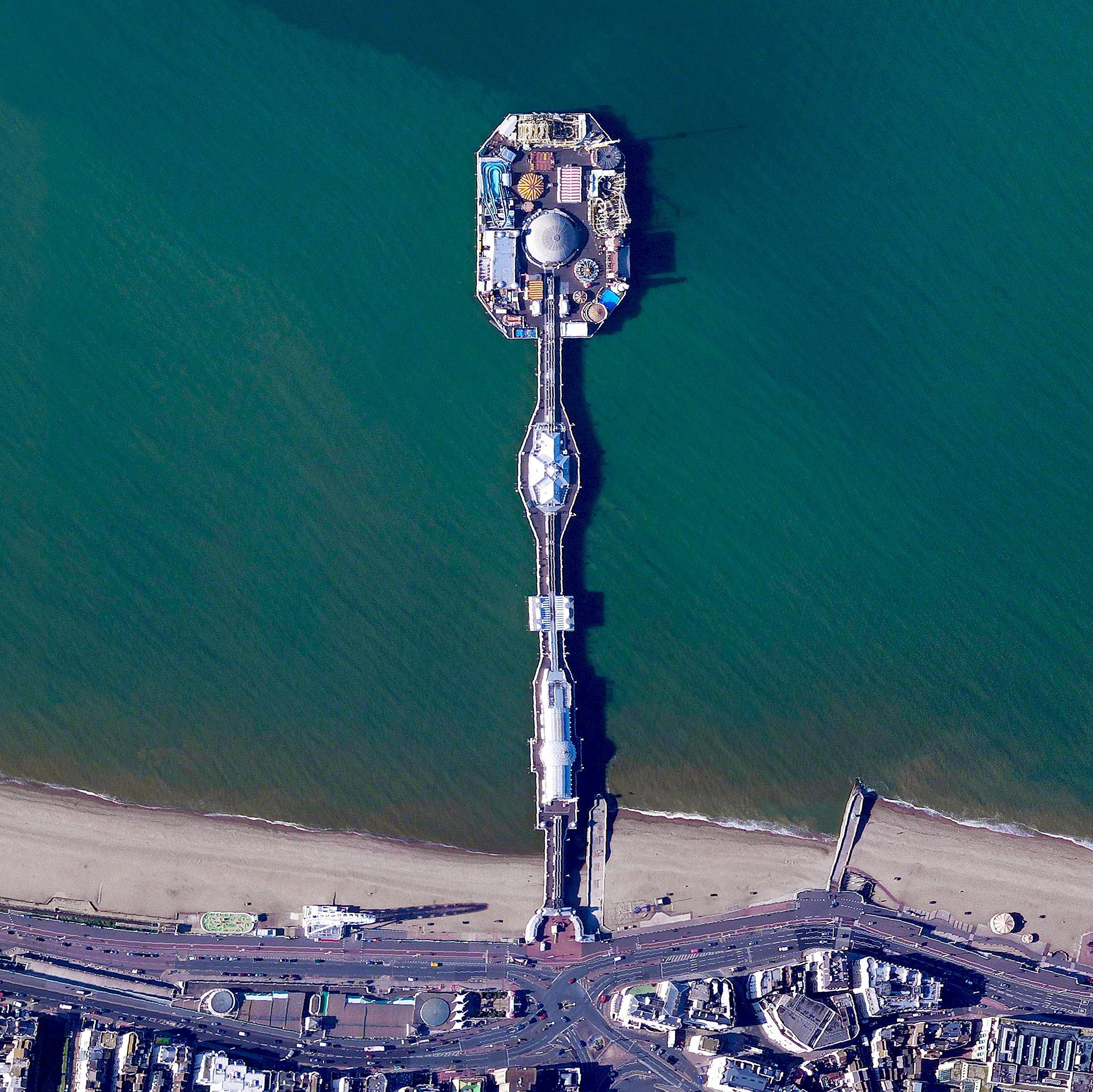 Brighton Pier, also known as Palace Pier, is constructed off the coast of the English city of Brighton. Extending 1,719 feet (524 meters) into the English Channel, the structure contains numerous restaurants, rides, and roller coasters.