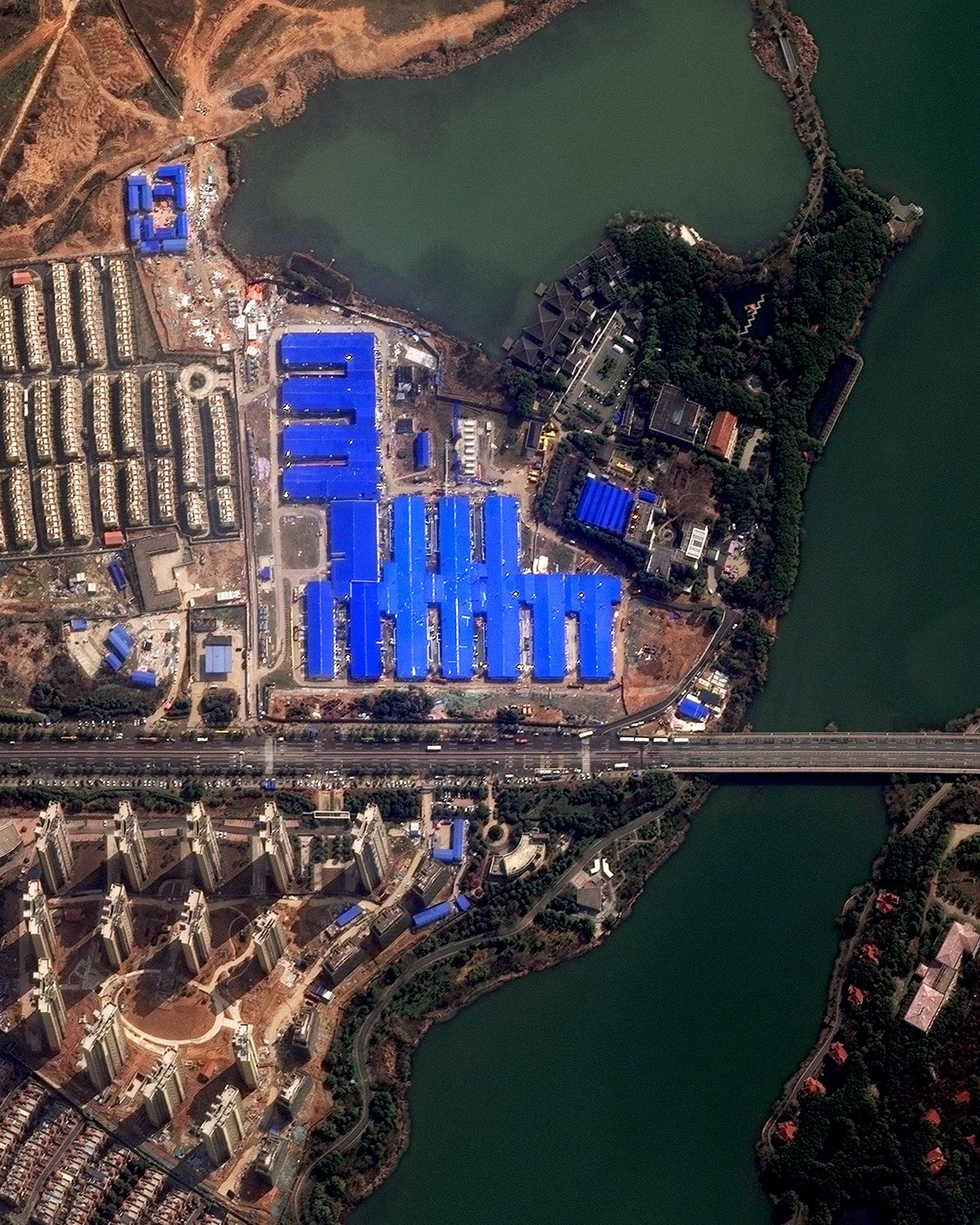 Huoshenshan Hospital in Wuhan, China was built over a 10 day period between January 23 and February 2. With more than 7,000 people working around the clock, the facility was a major step in the Chinese government’s response to slow the spread of COVID-19. The facility has 1,000 beds with 30 intensive care units, medical equipment rooms, and quarantine wards. Field hospitals like this one are one of the ways China has slowed the spread of the virus. As of 3/20/20, China has reported a second consecutive day of no new confirmed cases in Hubei province, the epicenter of the pandemic. 19.373908°, -99.088439° / Source imagery: Maxar Technologies